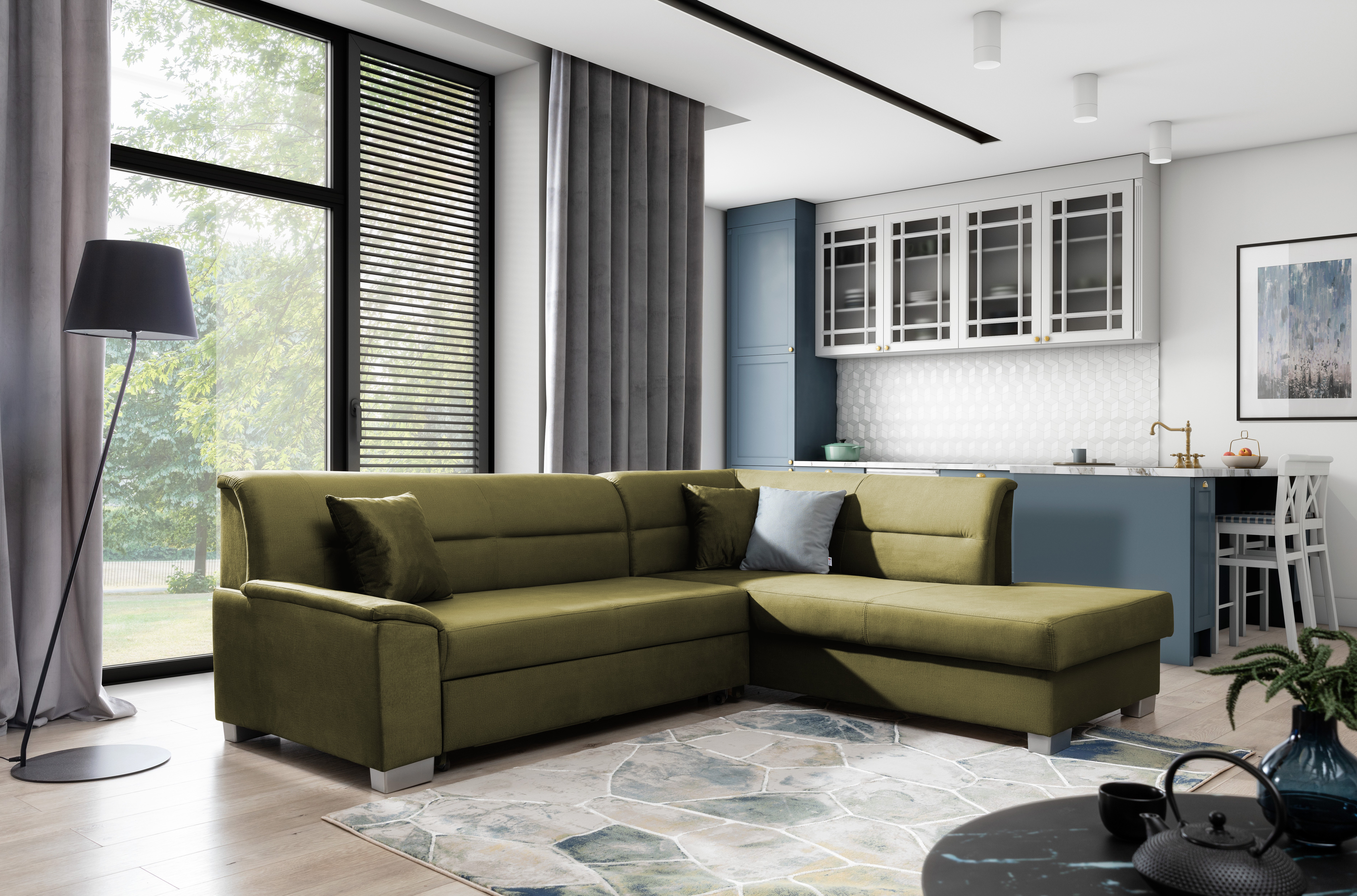 Sedací souprava Bergen v provedení Monolith 38 má rám vyroben z borovicového dřeva. Sedák tvoří vlnité pružiny faliste a HR pěna T30. Opěradla jsou vyplněny pěnou T2542. Rozkladem vznikne spací plocha 195 x 135 cm. Disponuje úložným prostorem. Nožky jsou plastové ve stříbrném provedení o výšce 7 cm. Nosnost sedací soupravy 315 kg. Provedené rohu pravé.