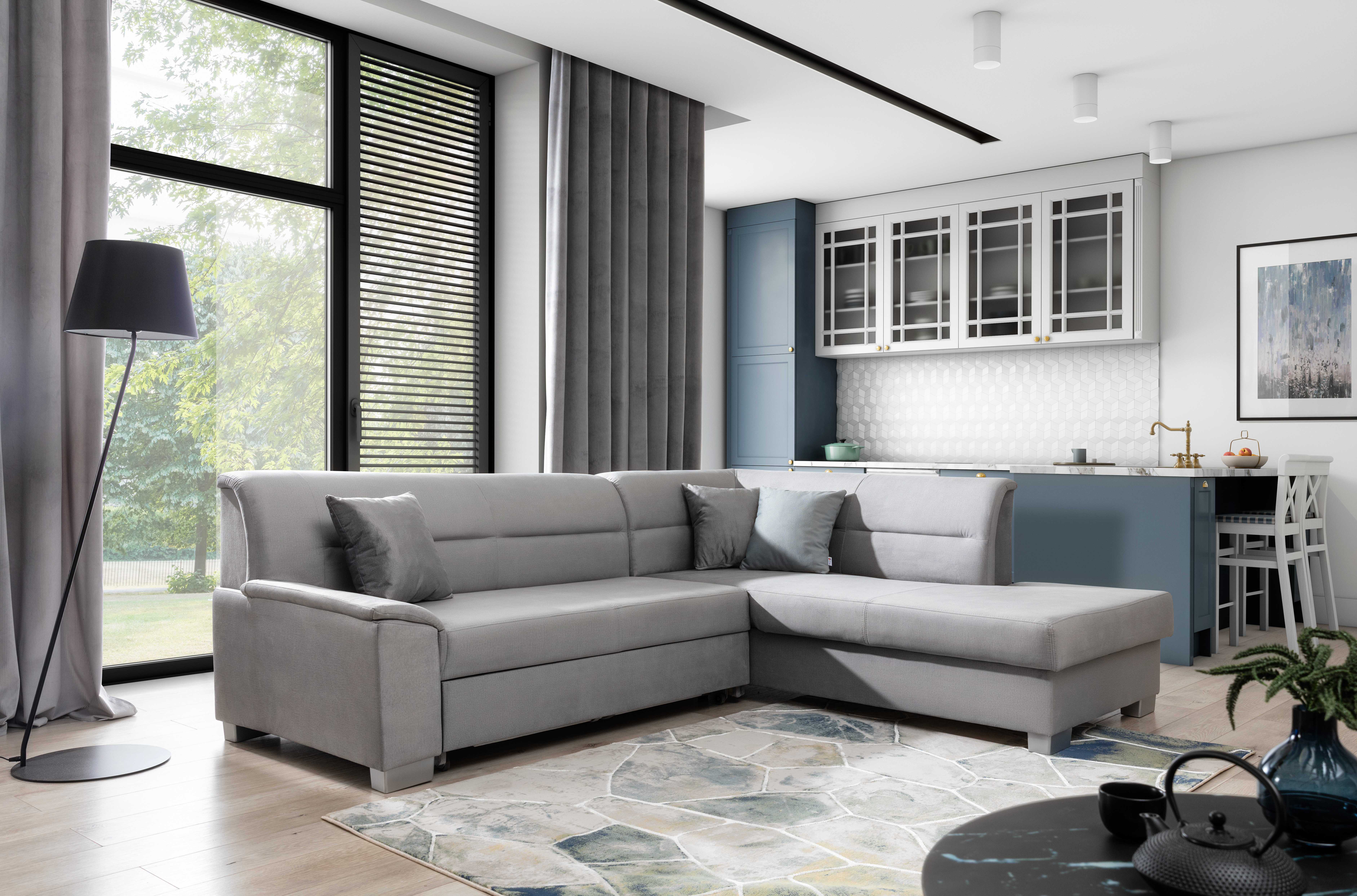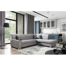 Sedací souprava Bergen v provedení Monolith 84/ Monolith 85 má rám vyroben z borovicového dřeva. Sedák tvoří vlnité pružiny faliste a HR pěna T30. Opěradla jsou vyplněny pěnou T2542. Rozkladem vznikne spací plocha 195 x 135 cm. Disponuje úložným prostorem. Nožky jsou plastové ve stříbrném provedení o výšce 7 cm. Nosnost sedací soupravy 315 kg. Provedené rohu pravé.