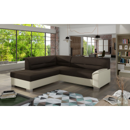 Sedací souprava Bergen v provedení Sawana 26/ eko kůže Soft 33 má rám vyroben z borovicového dřeva. Sedák tvoří vlnité pružiny faliste a HR pěna T30. Opěradla jsou vyplněny pěnou T2542. Rozkladem vznikne spací plocha 195 x 135 cm. Disponuje úložným prostorem. Nožky jsou plastové ve stříbrném provedení o výšce 7 cm. Nosnost sedací soupravy 315 kg. Provedené rohu levé.