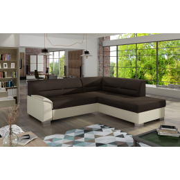 Sedací souprava Bergen v provedení Sawana 26/ eko kůže Soft 33 má rám vyroben z borovicového dřeva. Sedák tvoří vlnité pružiny faliste a HR pěna T30. Opěradla jsou vyplněny pěnou T2542. Rozkladem vznikne spací plocha 195 x 135 cm. Disponuje úložným prostorem. Nožky jsou plastové ve stříbrném provedení o výšce 7 cm. Nosnost sedací soupravy 315 kg. Provedené rohu pravé.
