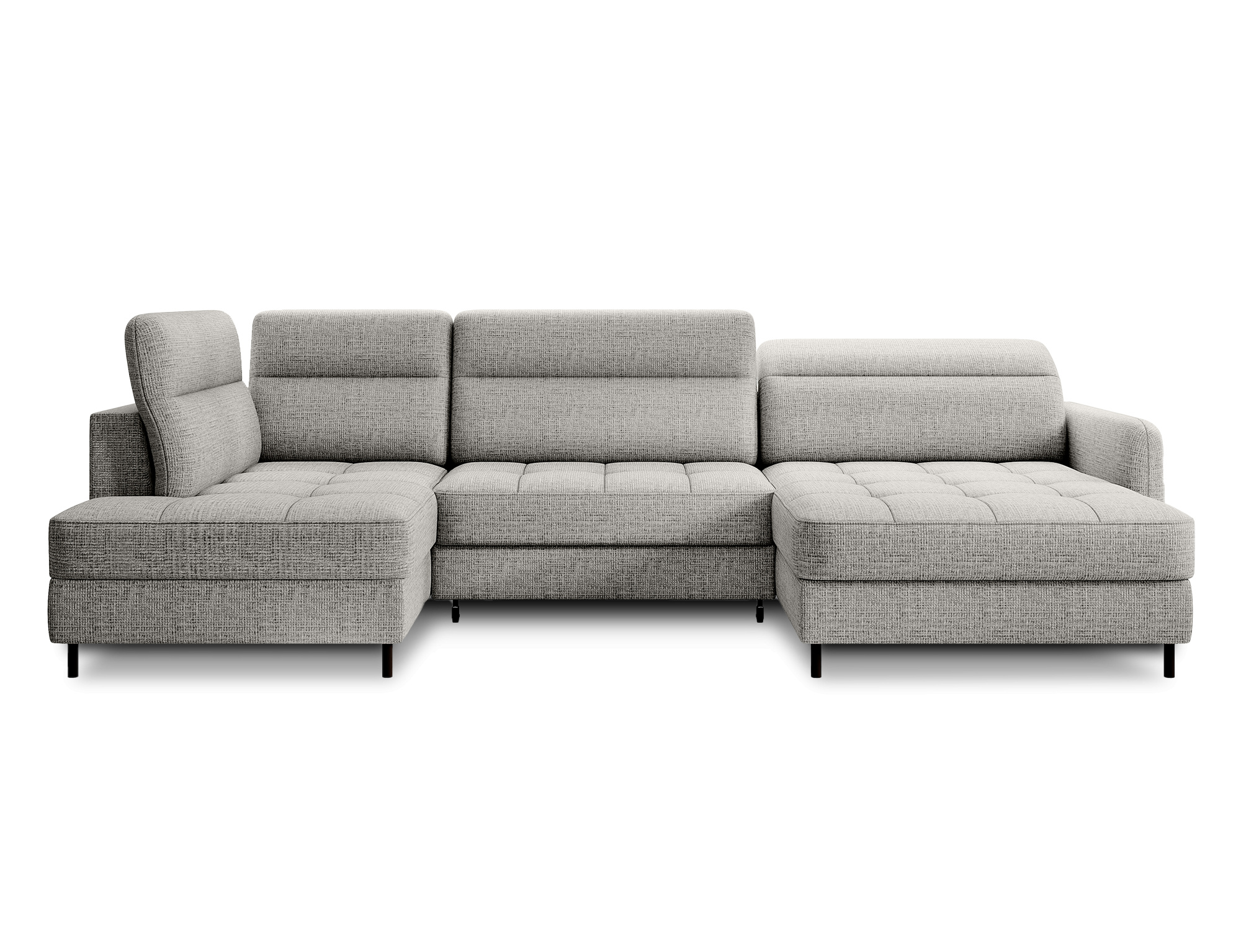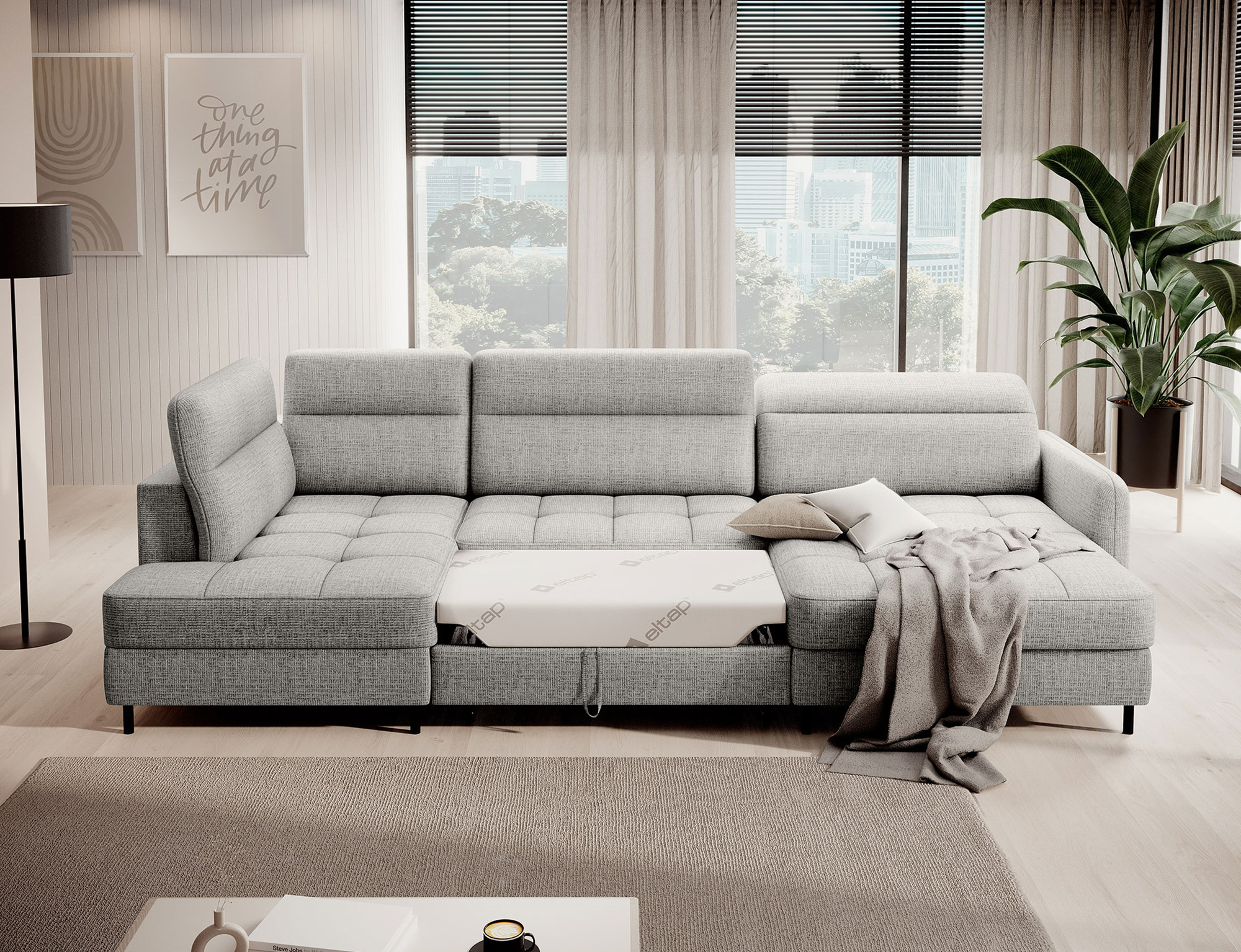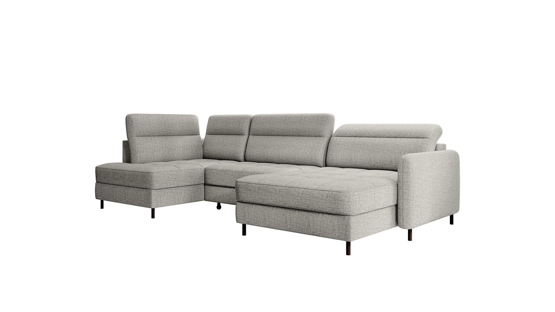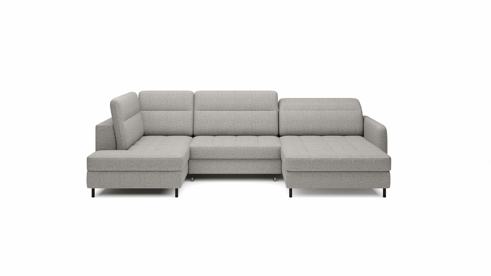 Sedací souprava Berrto v provedení Aubron 04 má sedák vybaven vlnitými pružinami typu B, které v kombinaci s vysoce elastickou pěnou HR + T2130. Opěradla jsou vyplněny čalouněnými popruhy a pěnou T2130. Rozkladem vznikne spací plocha 300x130 cm. Disponuje úložným prostorem. Černé ocelové nohy o výšce 10 cm. Nosnost soupravy je 390 kg. Provedení rohu pravé.