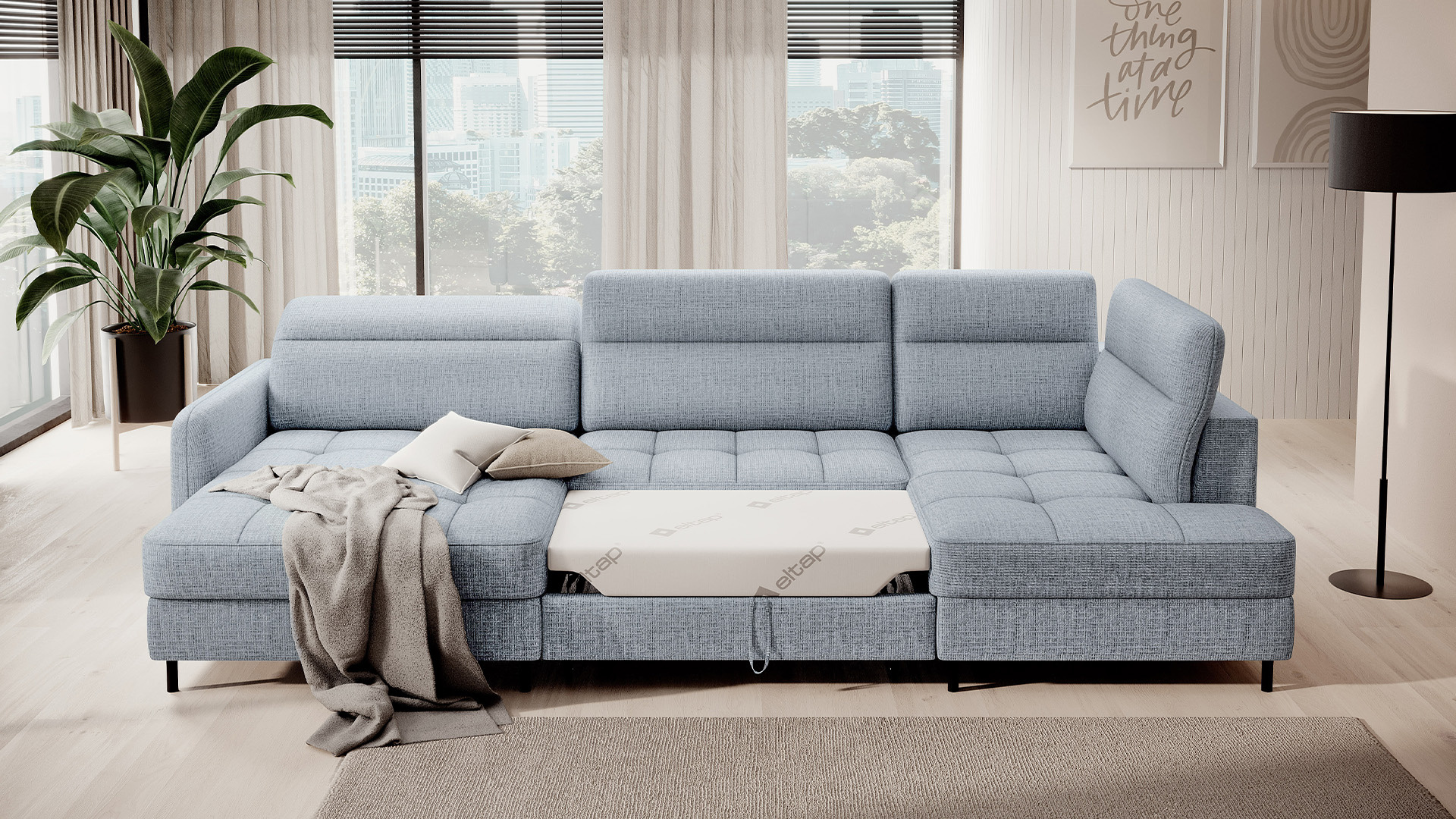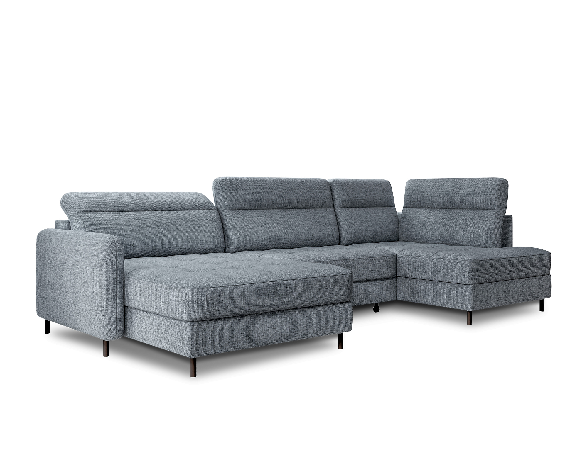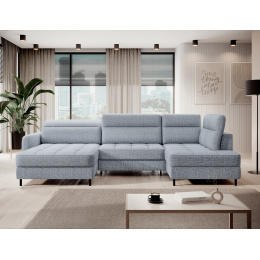 Sedací souprava Berrto v provedení Aubron 100 má sedák vybaven vlnitými pružinami typu B, které v kombinaci s vysoce elastickou pěnou HR + T2130. Opěradla jsou vyplněny čalouněnými popruhy a pěnou T2130. Rozkladem vznikne spací plocha 300x130 cm. Disponuje úložným prostorem. Černé ocelové nohy o výšce 10 cm. Nosnost soupravy je 390 kg. Provedení rohu levé.