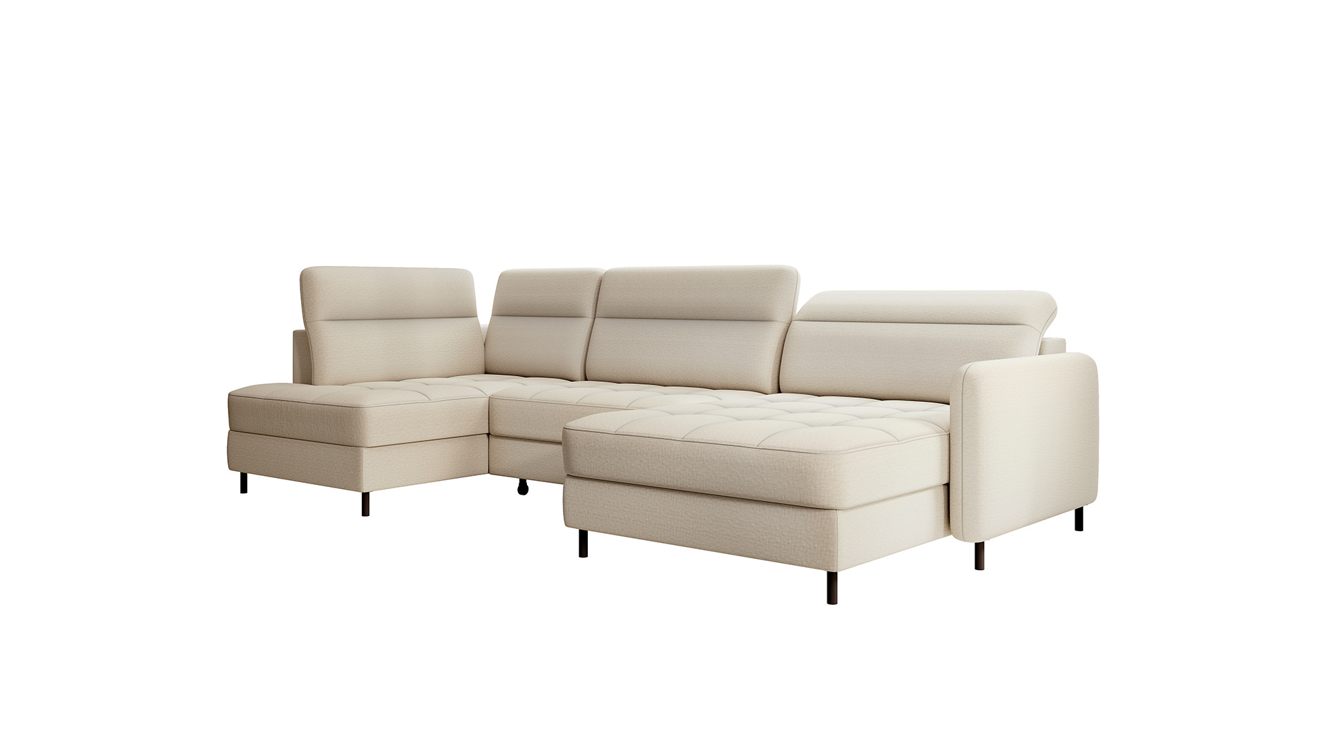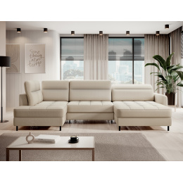 Sedací souprava Berrto v provedení Manhattan 18 má sedák vybaven vlnitými pružinami typu B, které v kombinaci s vysoce elastickou pěnou HR + T2130. Opěradla jsou vyplněny čalouněnými popruhy a pěnou T2130. Rozkladem vznikne spací plocha 300x130 cm. Disponuje úložným prostorem. Černé ocelové nohy o výšce 10 cm. Nosnost soupravy je 390 kg. Provedení rohu pravé.
