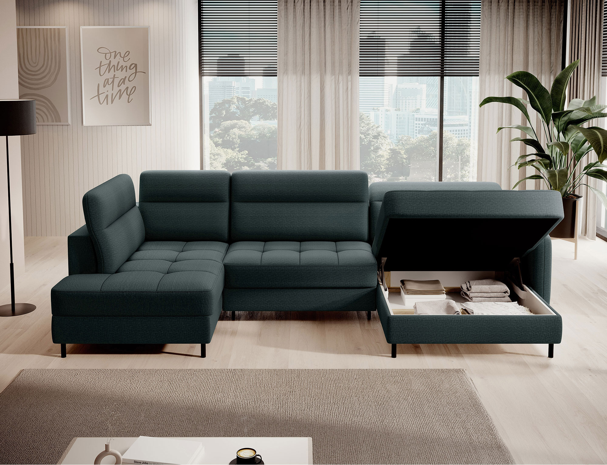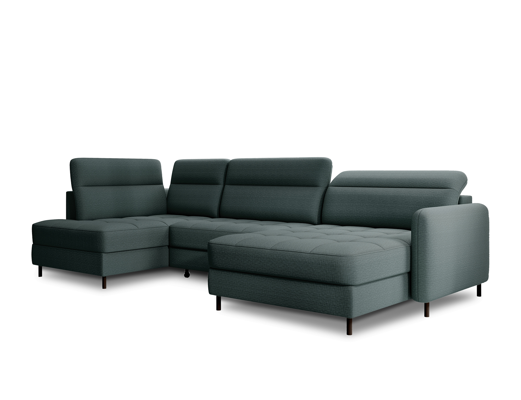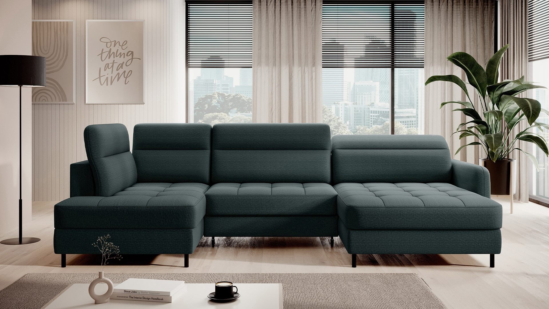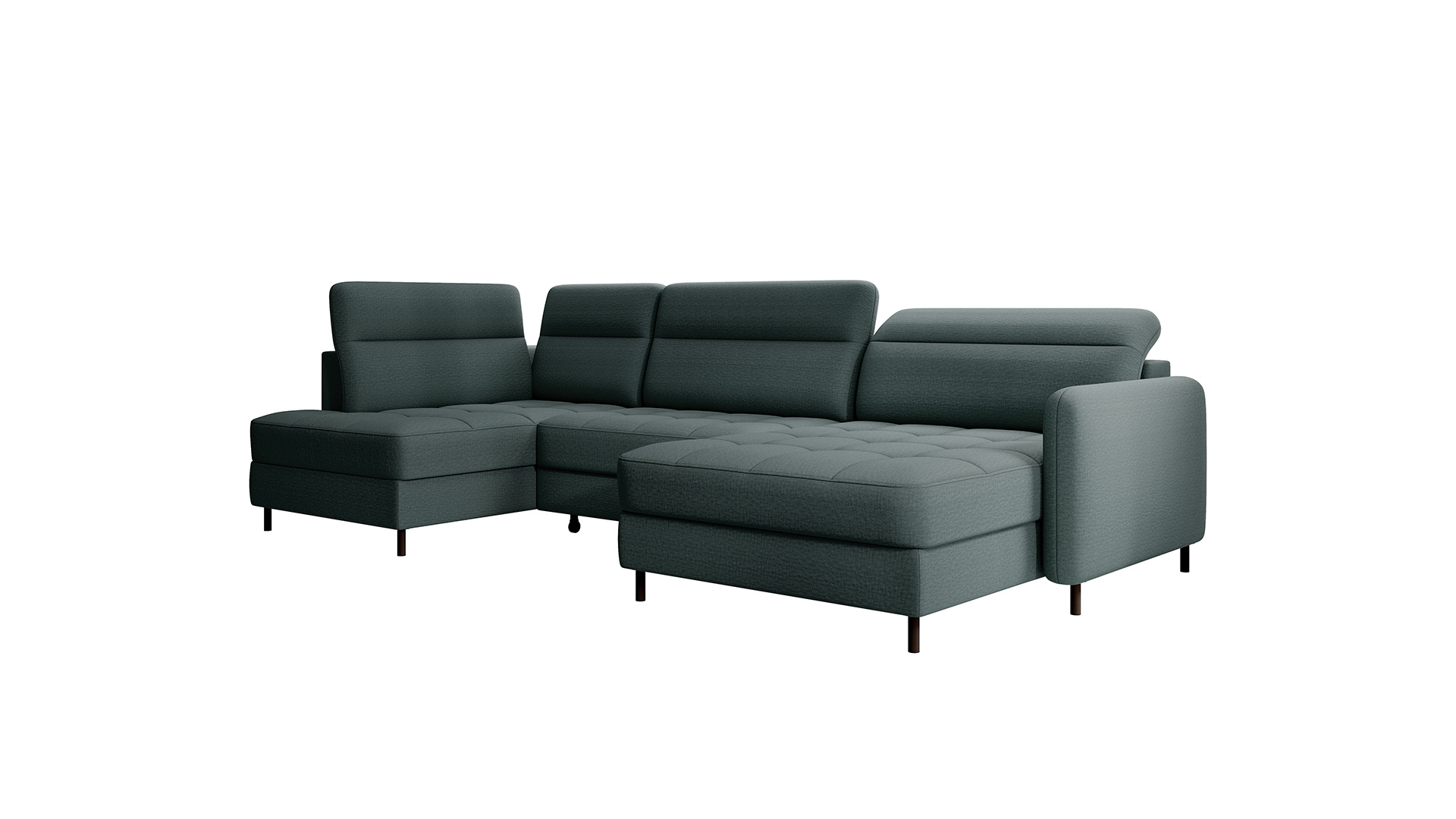 Sedací souprava Berrto v provedení Manhattan 38 má sedák vybaven vlnitými pružinami typu B, které v kombinaci s vysoce elastickou pěnou HR + T2130. Opěradla jsou vyplněny čalouněnými popruhy a pěnou T2130. Rozkladem vznikne spací plocha 300x130 cm. Disponuje úložným prostorem. Černé ocelové nohy o výšce 10 cm. Nosnost soupravy je 390 kg. Provedení rohu pravé.
