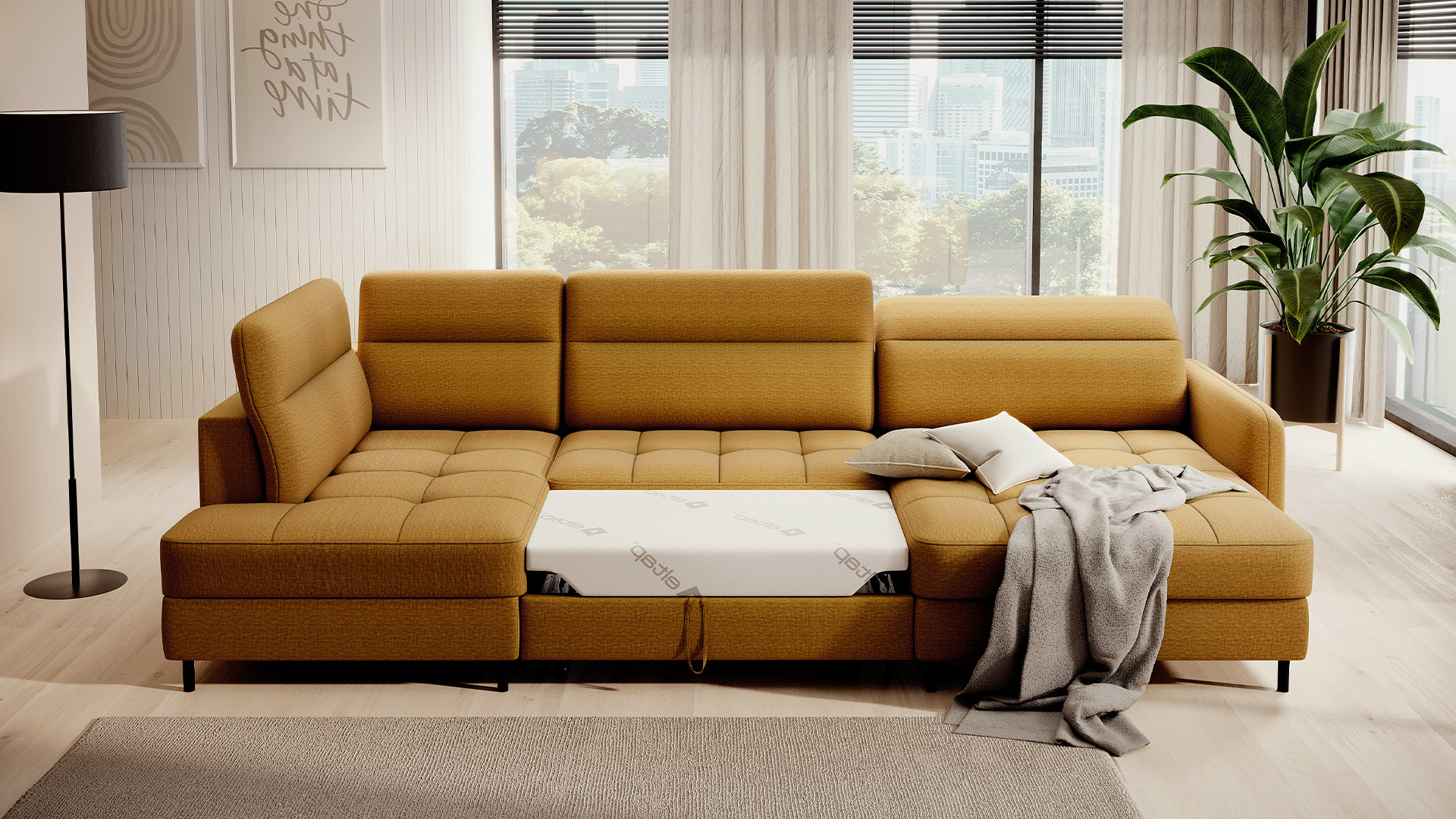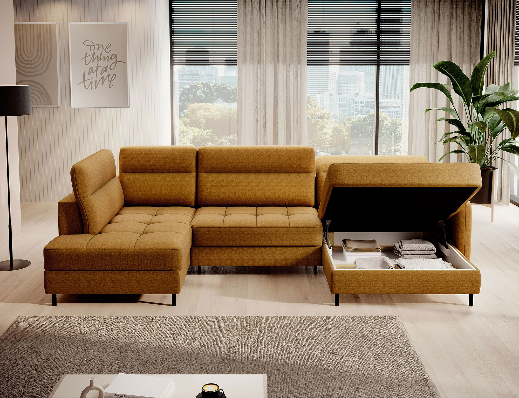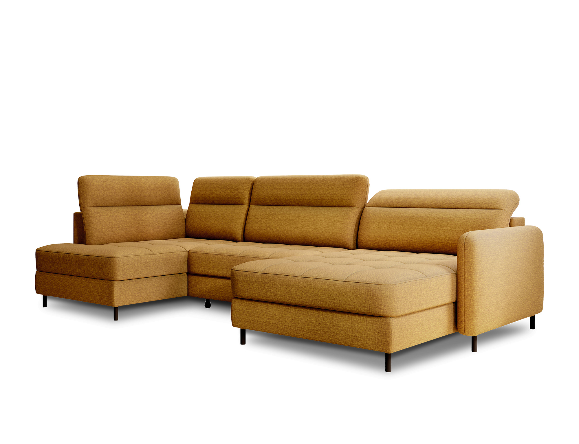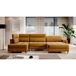 Sedací souprava Berrto v provedení Manhattan 45 má sedák vybaven vlnitými pružinami typu B, které v kombinaci s vysoce elastickou pěnou HR + T2130. Opěradla jsou vyplněny čalouněnými popruhy a pěnou T2130. Rozkladem vznikne spací plocha 300x130 cm. Disponuje úložným prostorem. Černé ocelové nohy o výšce 10 cm. Nosnost soupravy je 390 kg. Provedení rohu pravé.