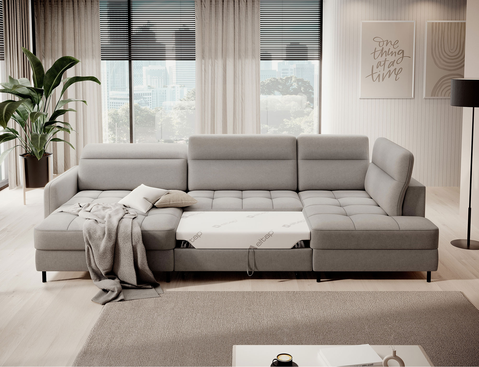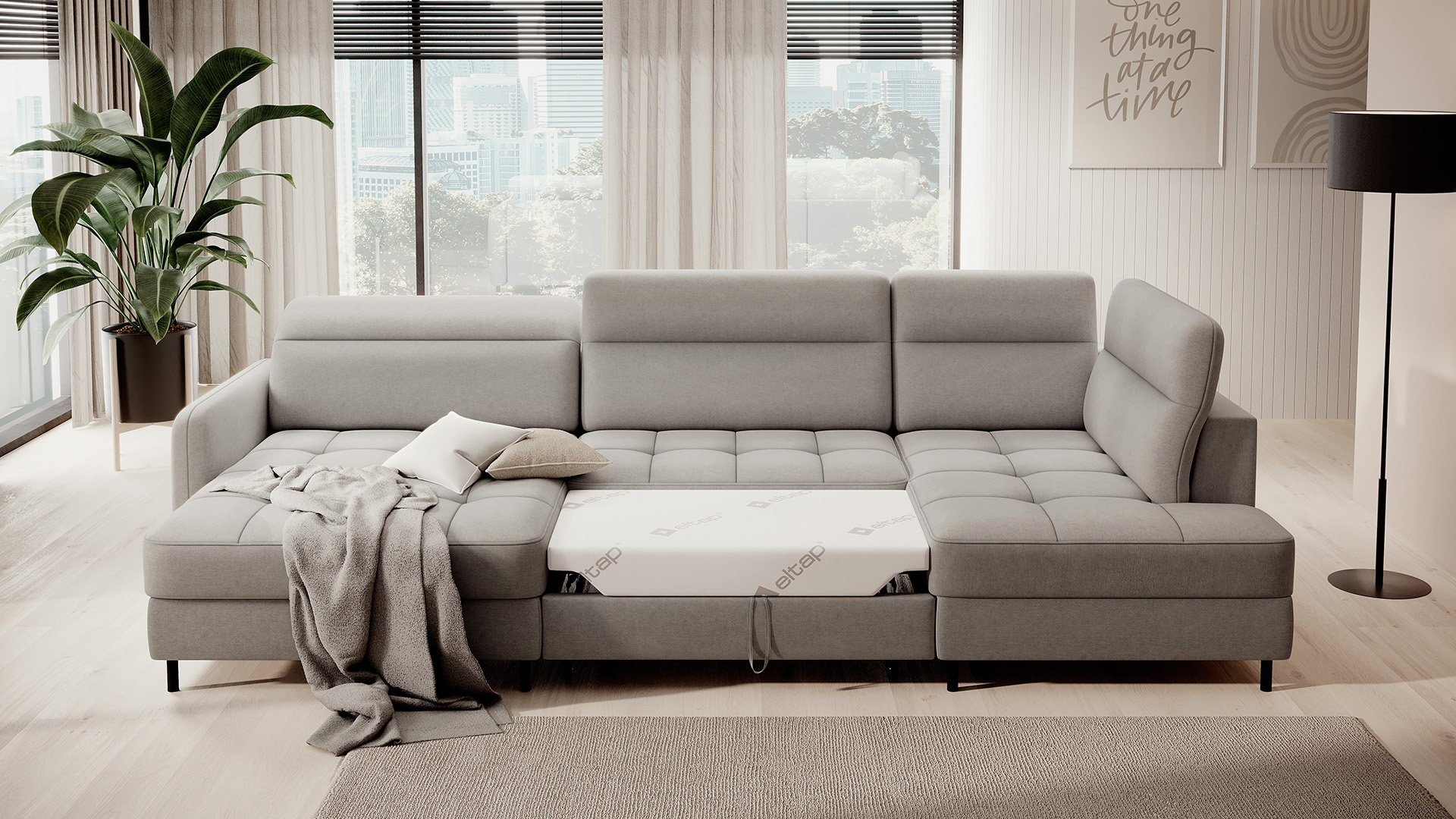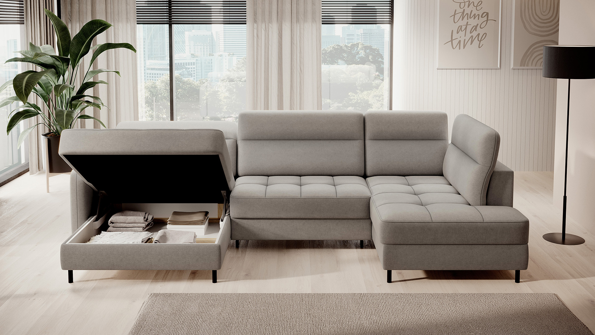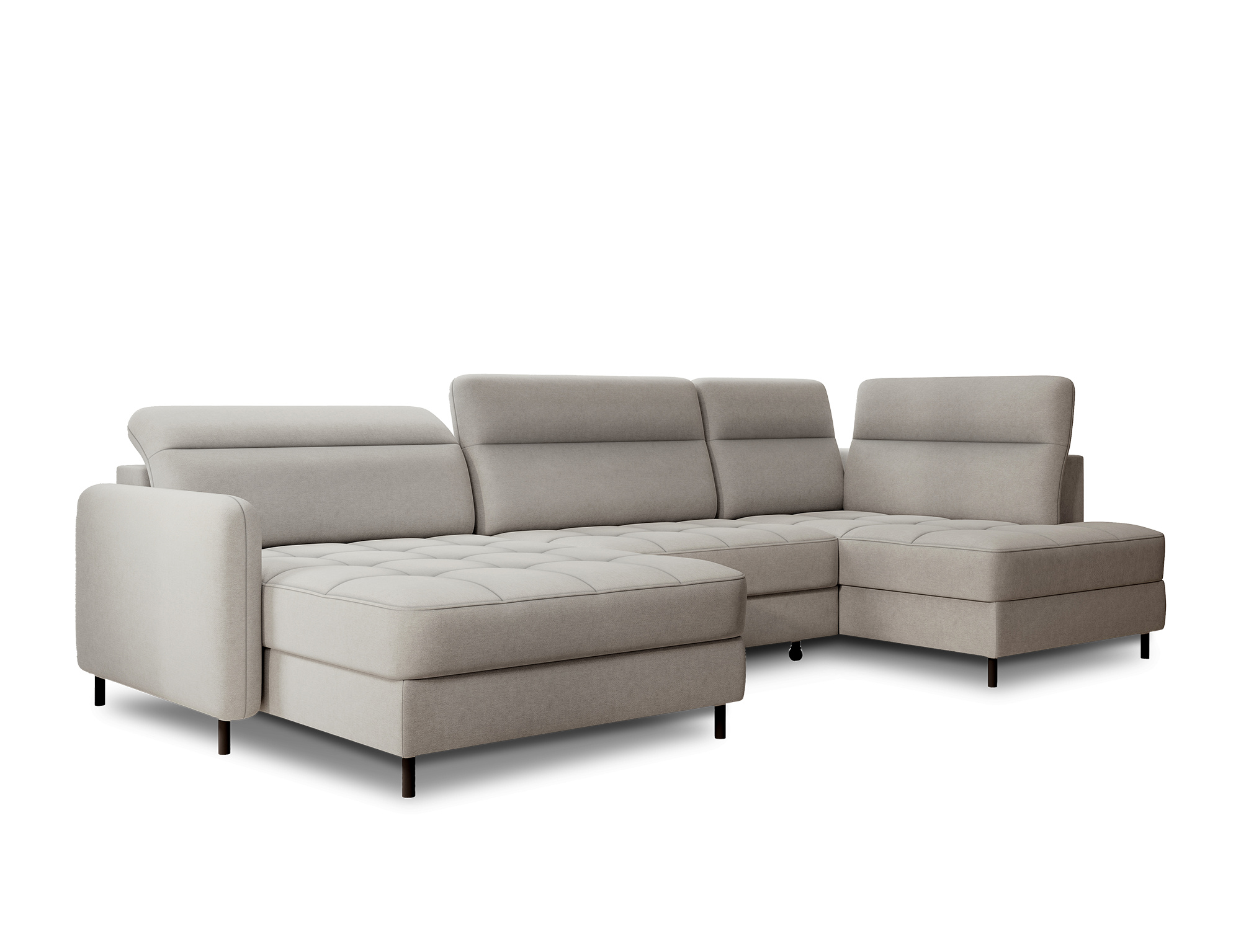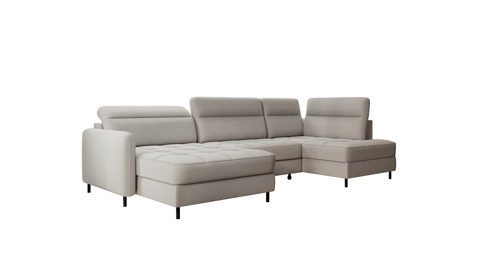 Sedací souprava Berrto v provedení Raquel 03 má sedák vybaven vlnitými pružinami typu B, které v kombinaci s vysoce elastickou pěnou HR + T2130. Opěradla jsou vyplněny čalouněnými popruhy a pěnou T2130. Rozkladem vznikne spací plocha 300x130 cm. Disponuje úložným prostorem. Černé ocelové nohy o výšce 10 cm. Nosnost soupravy je 390 kg. Provedení rohu levé.