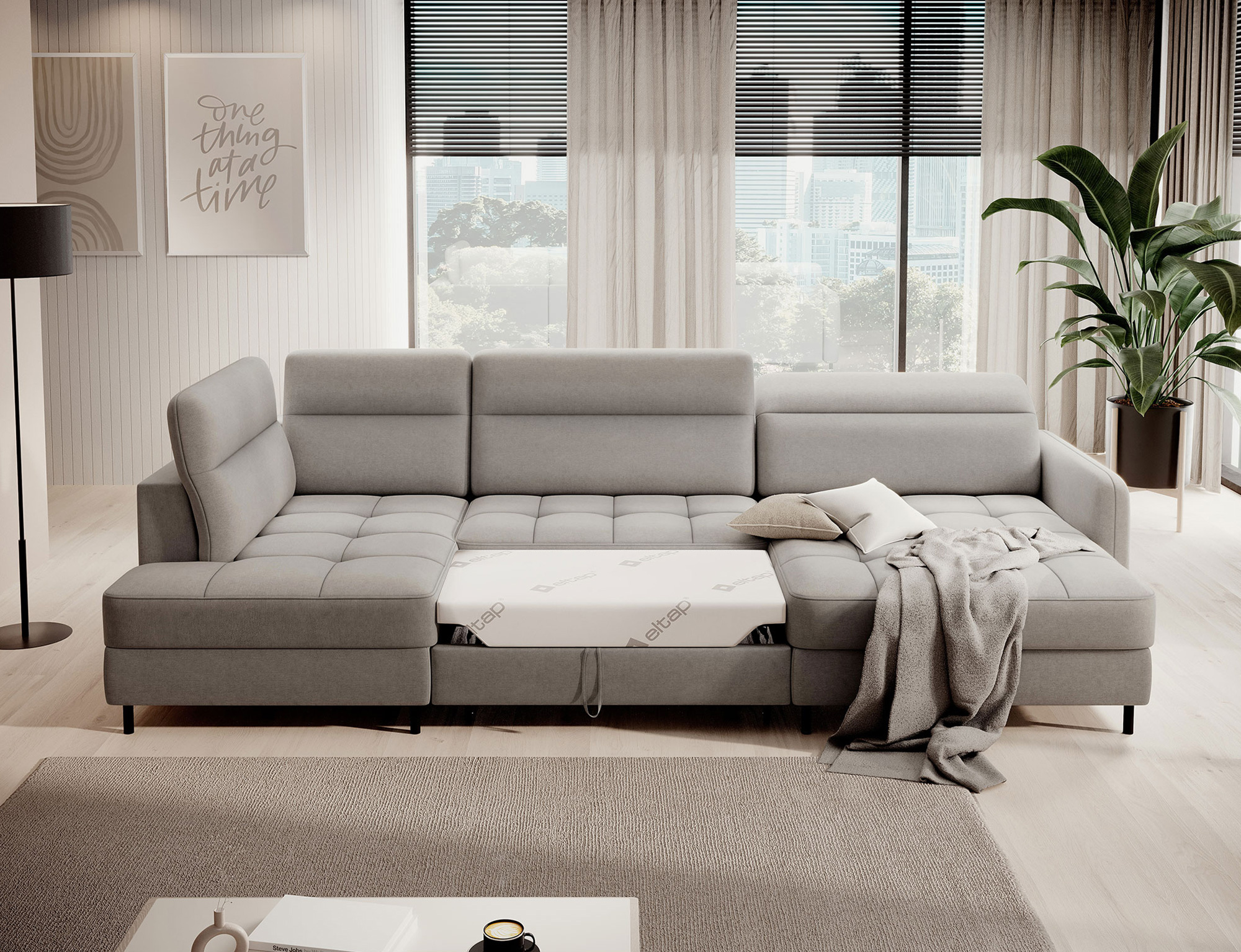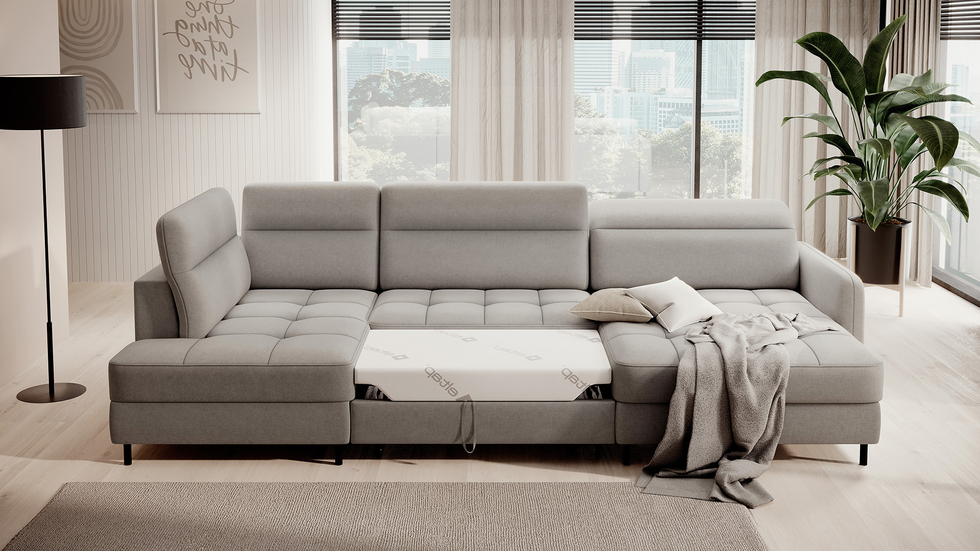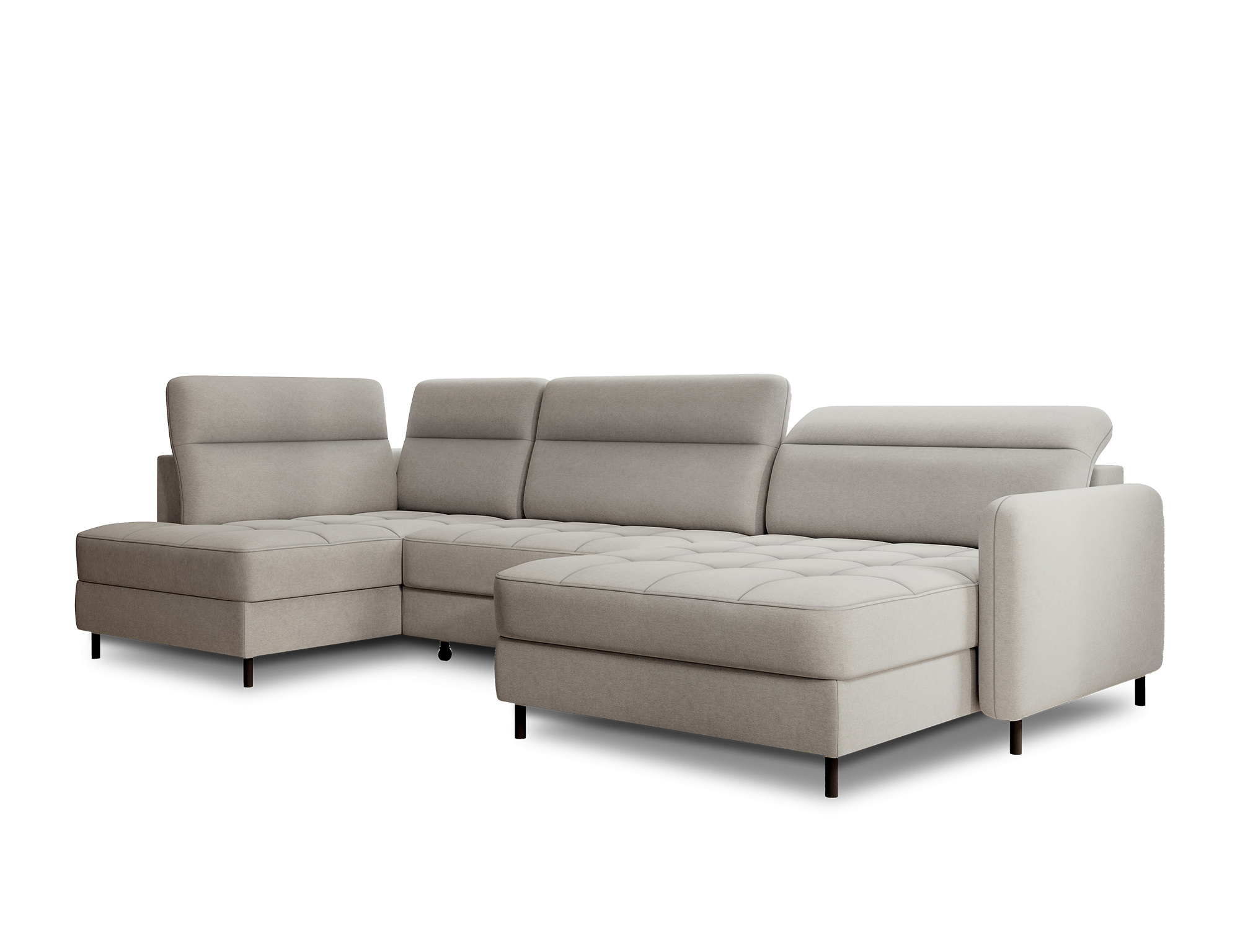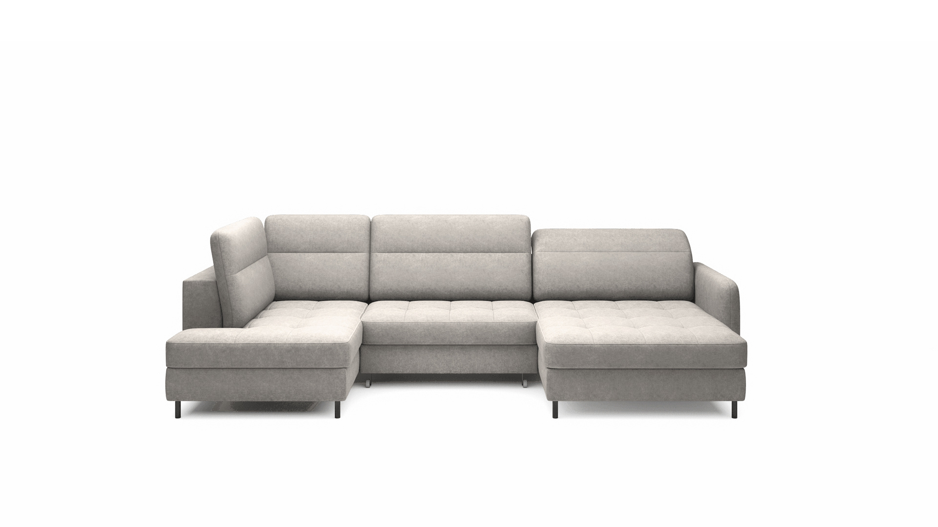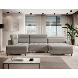 Sedací souprava Berrto v provedení Raquel 03 má sedák vybaven vlnitými pružinami typu B, které v kombinaci s vysoce elastickou pěnou HR + T2130. Opěradla jsou vyplněny čalouněnými popruhy a pěnou T2130. Rozkladem vznikne spací plocha 300x130 cm. Disponuje úložným prostorem. Černé ocelové nohy o výšce 10 cm. Nosnost soupravy je 390 kg. Provedení rohu pravé.