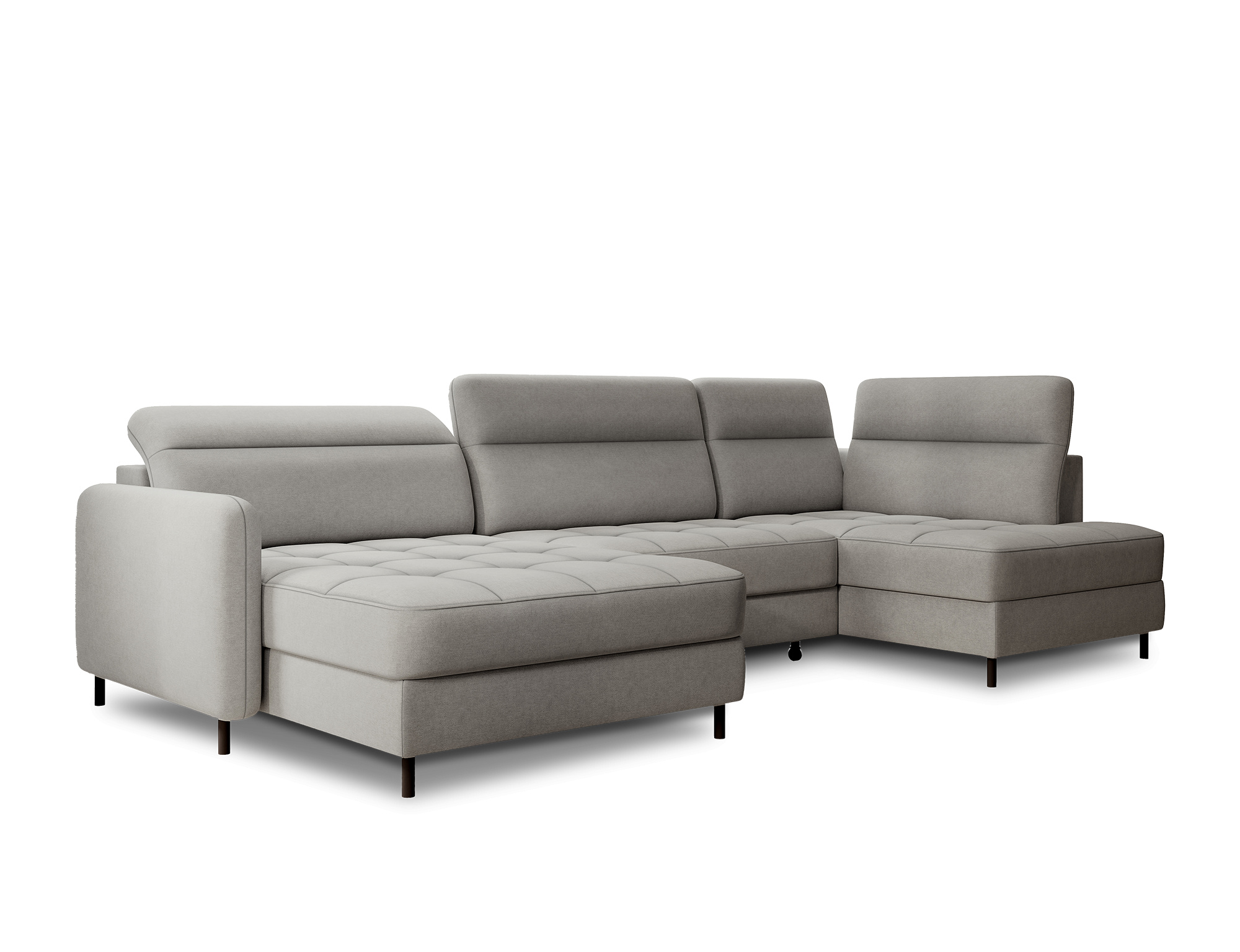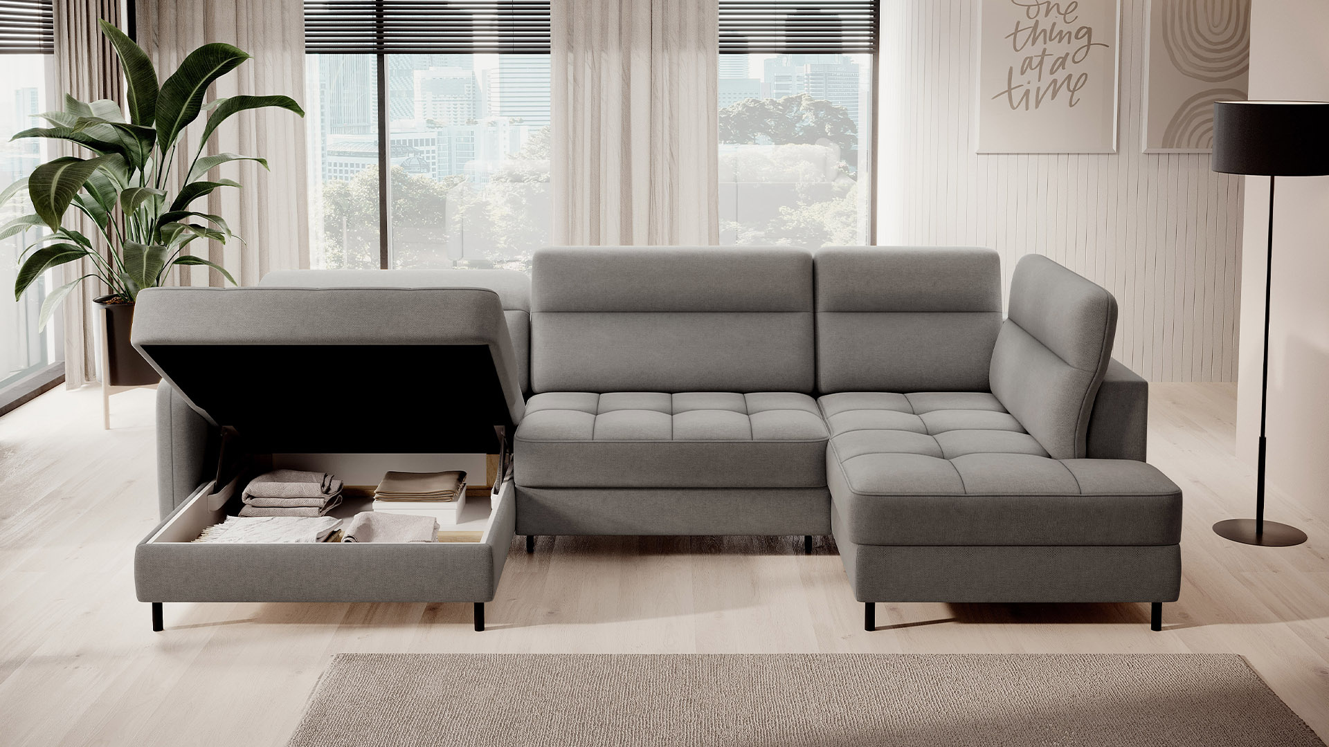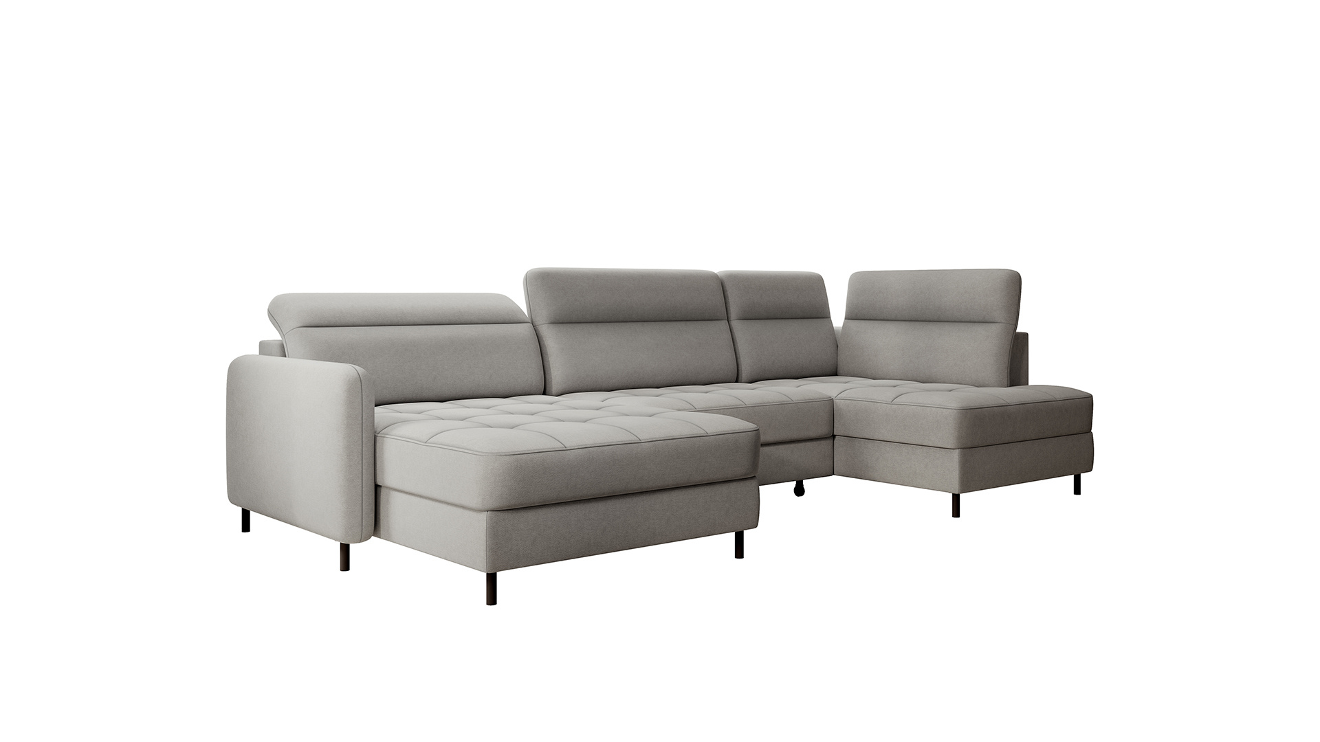 Sedací souprava Berrto v provedení Raquel 04 má sedák vybaven vlnitými pružinami typu B, které v kombinaci s vysoce elastickou pěnou HR + T2130. Opěradla jsou vyplněny čalouněnými popruhy a pěnou T2130. Rozkladem vznikne spací plocha 300x130 cm. Disponuje úložným prostorem. Černé ocelové nohy o výšce 10 cm. Nosnost soupravy je 390 kg. Provedení rohu levé.