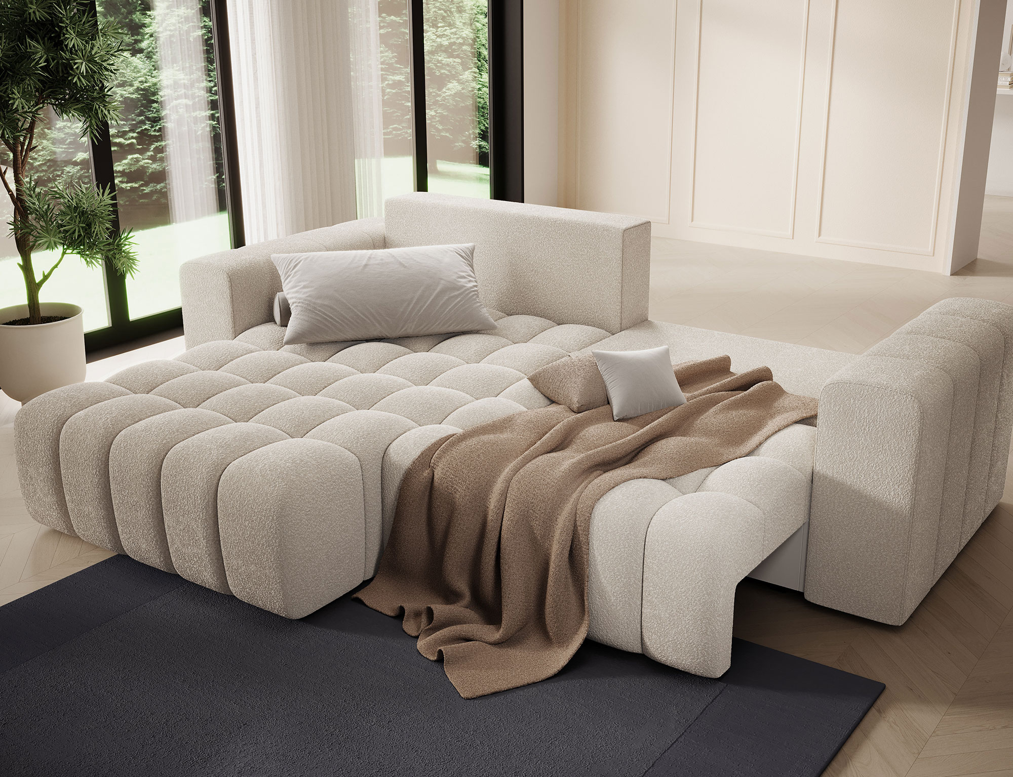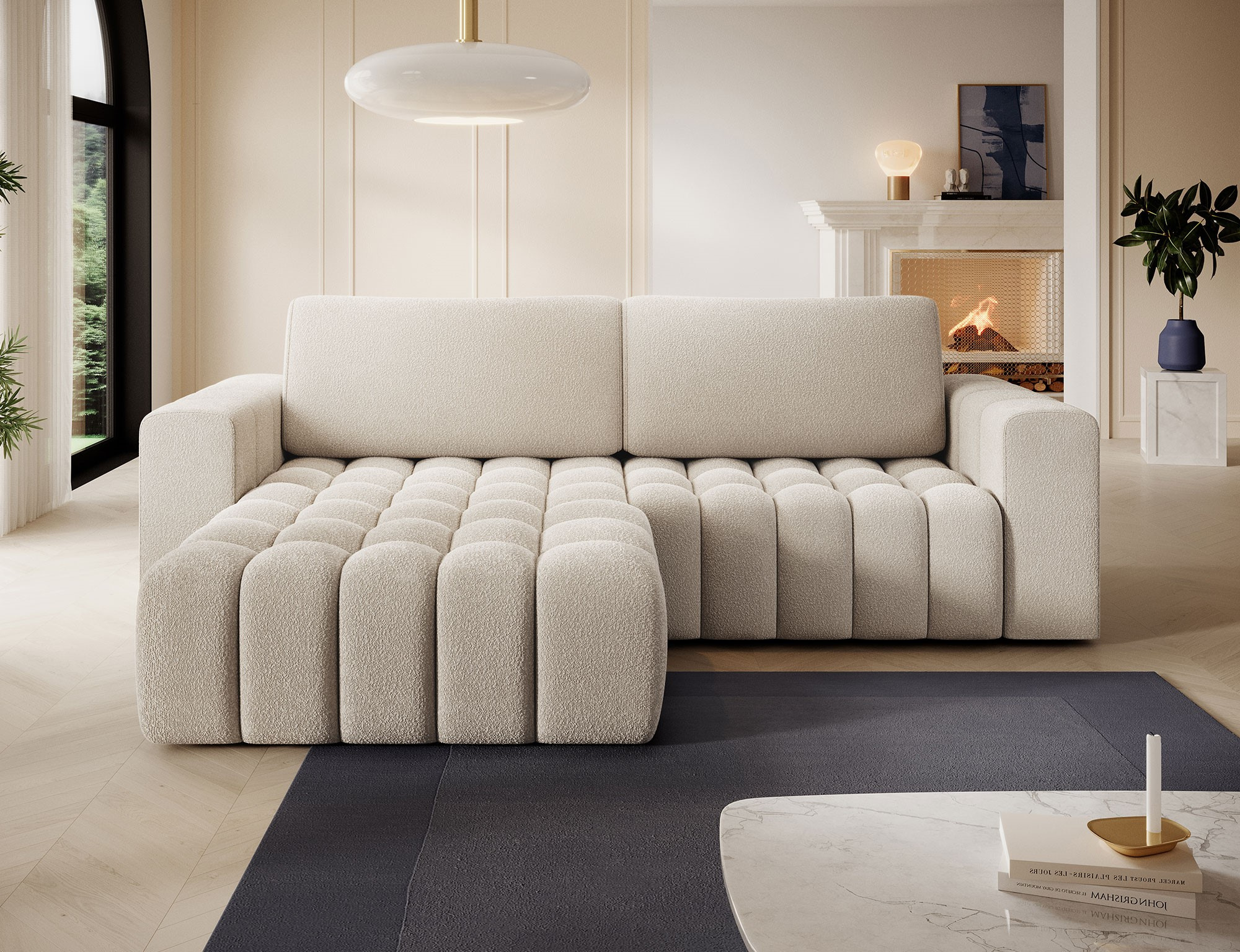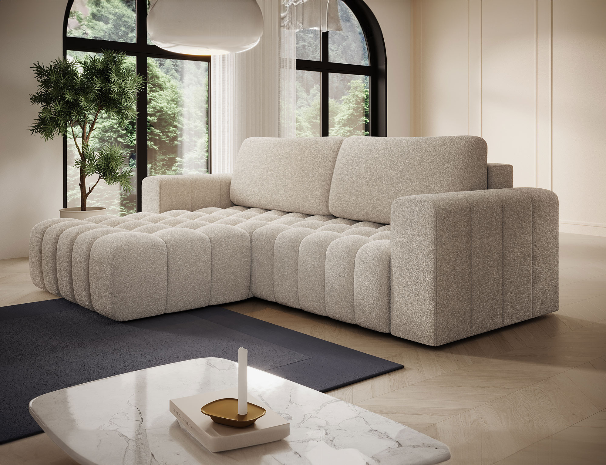 Sedací souprava Bonett v provedení Jaffray 18 má kostru z masivního dřeva a dřevotřísky. Sedák tvoří vlnité pružiny faliste a HR pěna+ T2130. Pomocí rozkladu systému DL vznikne spací plocha 200 x 130 cm. Disponuje úložným prostorem, ukrytým pod funkcí spaní. Záda jsou čalouněná, takže ji můžete umístit i do prostoru. Nohy jsou plastové v černé barvě o výšce 2,5 cm. Nosnost 315 kg. Provedení rohu levé.