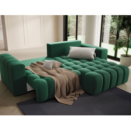 Sedací souprava Bonett v provedení Kronos 19 má kostru z masivního dřeva a dřevotřísky. Sedák tvoří vlnité pružiny faliste a HR pěna+ T2130. Pomocí rozkladu systému DL vznikne spací plocha 200 x 130 cm. Disponuje úložným prostorem, ukrytým pod funkcí spaní. Záda jsou čalouněná, takže ji můžete umístit i do prostoru. Nohy jsou plastové v černé barvě o výšce 2,5 cm. Nosnost 315 kg. Provedení rohu pravé.