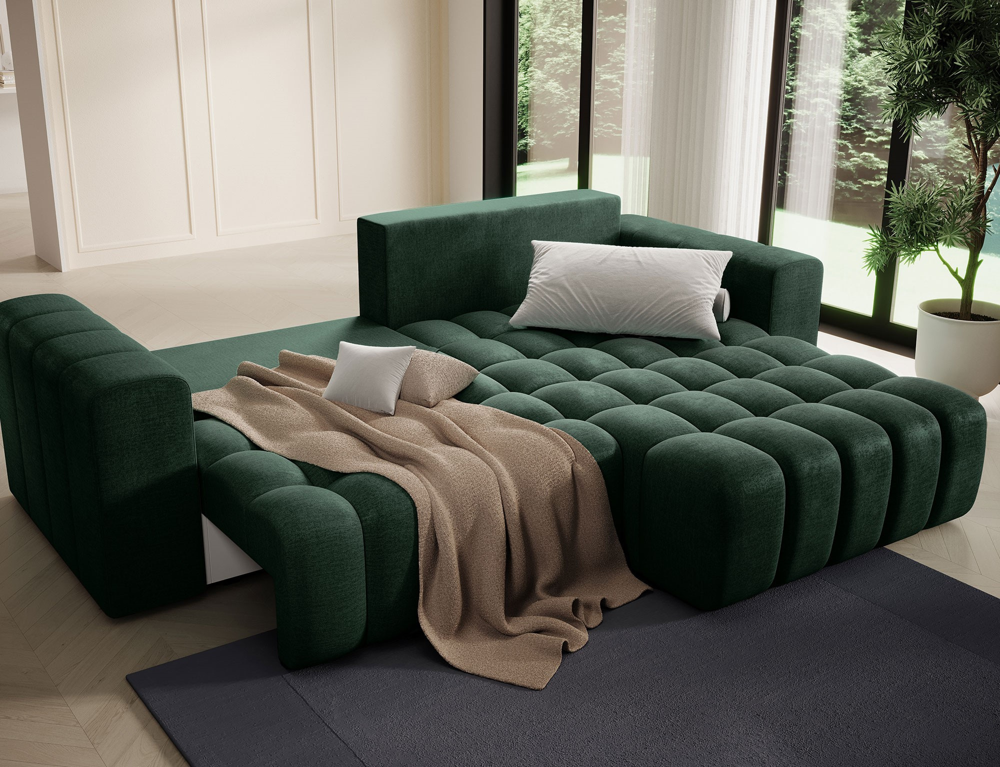 Sedací souprava Bonett v provedení Monolith 37 má kostru z masivního dřeva a dřevotřísky. Sedák tvoří vlnité pružiny faliste a HR pěna+ T2130. Pomocí rozkladu systému DL vznikne spací plocha 200 x 130 cm. Disponuje úložným prostorem, ukrytým pod funkcí spaní. Záda jsou čalouněná, takže ji můžete umístit i do prostoru. Nohy jsou plastové v černé barvě o výšce 2,5 cm. Nosnost 315 kg. Provedení rohu pravé.
