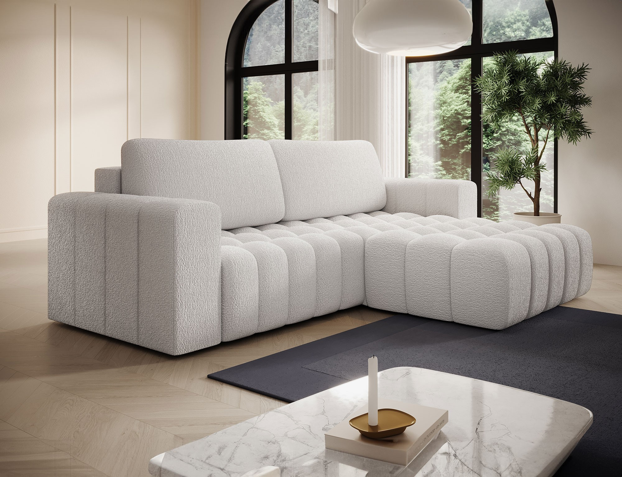 Sedací souprava Bonett v provedení Royal 01 má kostru z masivního dřeva a dřevotřísky. Sedák tvoří vlnité pružiny faliste a HR pěna+ T2130. Pomocí rozkladu systému DL vznikne spací plocha 200 x 130 cm. Disponuje úložným prostorem, ukrytým pod funkcí spaní. Záda jsou čalouněná, takže ji můžete umístit i do prostoru. Nohy jsou plastové v černé barvě o výšce 2,5 cm. Nosnost 315 kg. Provedení rohu pravé.