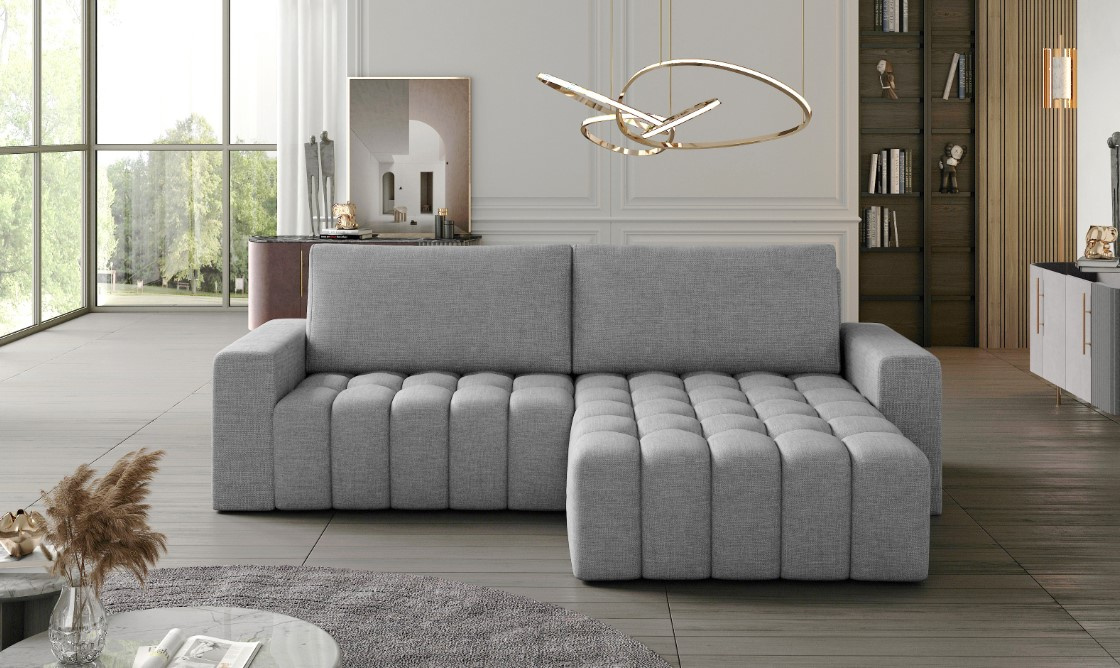 Moderní čalouněná sedací souprava Bonett je vybavena úložným prostorem plus funkci spaní v dezénu Sawana 21 (šedá). Korpus rohové sedací soupravy je zhotoven ze dřeva v kombinaci s dřevotřískovou deskou. Okouzlující prošívání na sedadle a velké polštáře na opěradle dodávají kouzlo. O pohodlí rozhodují také široké loketní opěrky. Sedadlo je vyrobeno z kombinace pěny T25 a HR pěny, reaguje rychleji na změnu polohy a tím - lépe se přizpůsobuje našemu tělu, což je důležité zejména během spánku. Bonett je vybaven funkcí spánku o ploše 195x125 cm, díky níž můžeme roh snadno a rychle proměnit v postel. Systém DL je snadný způsob, jak získat sklopený roh - sklopné sedadlo a sklopné opěradlo nám dávají rovnoměrnou plochu na spaní. Zboží dodáváme v demontu.