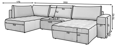 Sedací souprava Bonito v provedení Borneo 4 má kostru , kterou tvoří masivní dřevo a dřevotříska. Sedák je vyplněn kvalitní pěnou HR + T2540. Záda jsou čalouněná, opěradla tvoří čtyři velké odnímatelné polštáře. Pomocí mechanismu DL vznikne spací plocha o rozměru 300 × 120 cm. Nožky jsou černé plastové o výšce 2,5 cm. Nosnost soupravy 400 kg. Provedení rohu pravé.