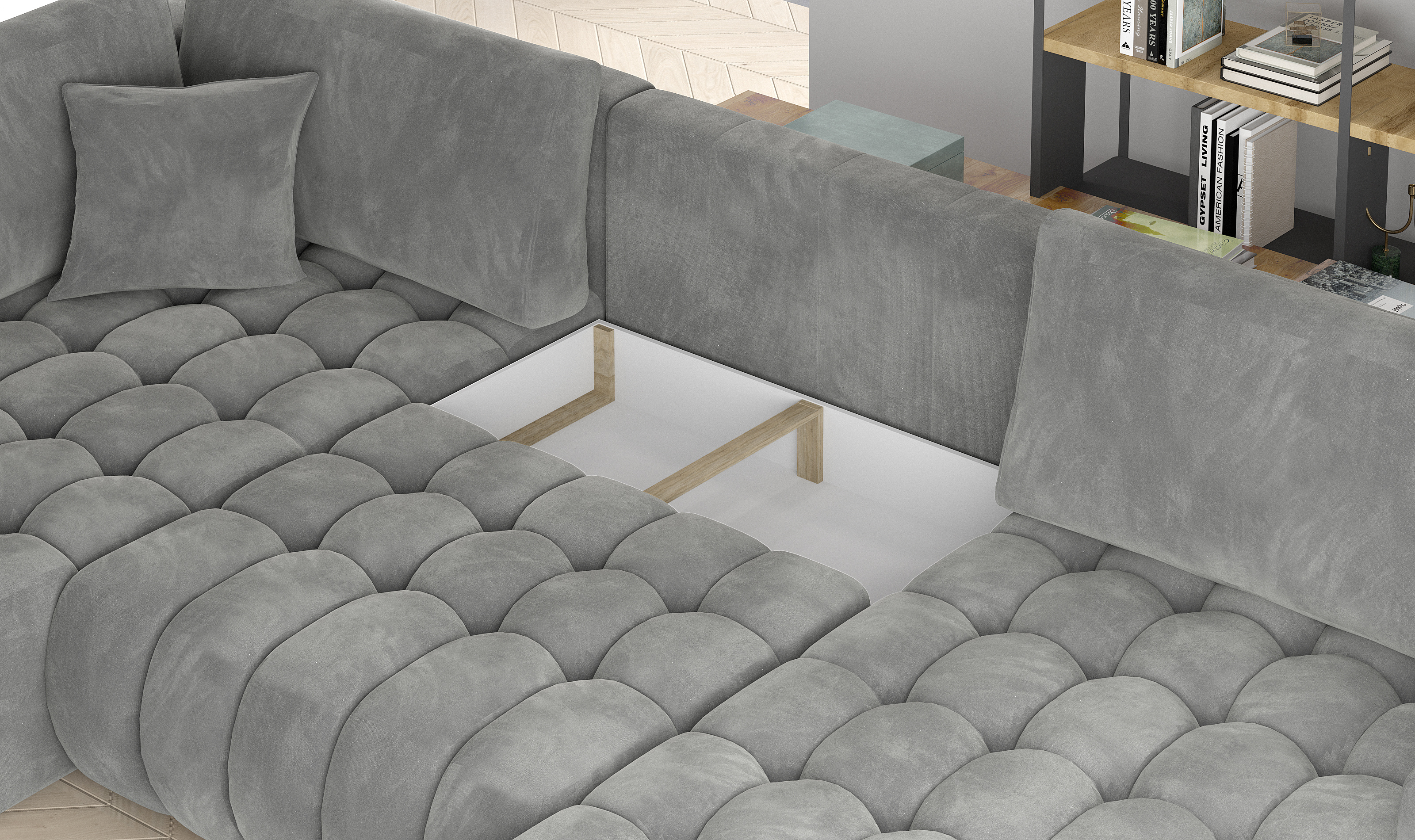 Sedací souprava Bonita v dezénu Savoi 07. Sedací souprava je skvělé místo k odpočinku a díky rozkladu vznikne velká plocha na spaní. Samozřejmostí je také nepostradatelný úložný prostor. Sedák i opěrák jsou vyrobeny z inovativní, vysoce elastické HR pěny, stejně jako pěny T25, která rychle reaguje na změny naší polohy, díky čemuž se lépe přizpůsobí našemu tělu jak při sezení, tak při ležení či spánku. Vyobrazené doplňky a dekorace nejsou v ceně. Spací plocha 300x120 cm. Potahová látka jako na hlavní fotografii.