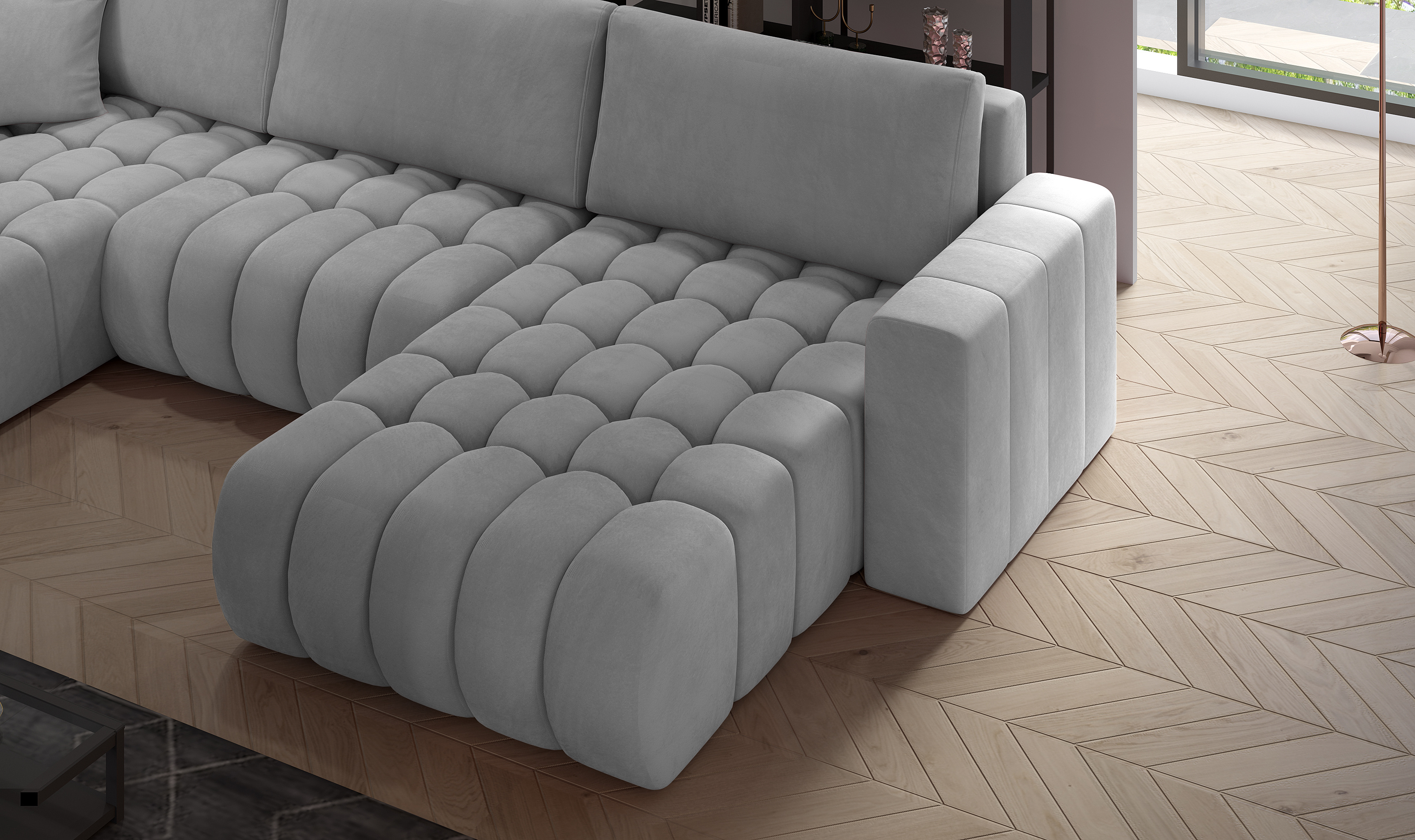 Sedací souprava Bonita v dezénu VelvetMat25. Sedací souprava je skvělé místo k odpočinku a díky rozkladu vznikne velká plocha na spaní. Samozřejmostí je také nepostradatelný úložný prostor. Sedák i opěrák jsou vyrobeny z inovativní, vysoce elastické HR pěny, stejně jako pěny T25, která rychle reaguje na změny naší polohy, díky čemuž se lépe přizpůsobí našemu tělu jak při sezení, tak při ležení či spánku. Vyobrazené doplňky a dekorace nejsou v ceně. Spací plocha 300x120 cm. Potahová látka jako na hlavní fotografii.