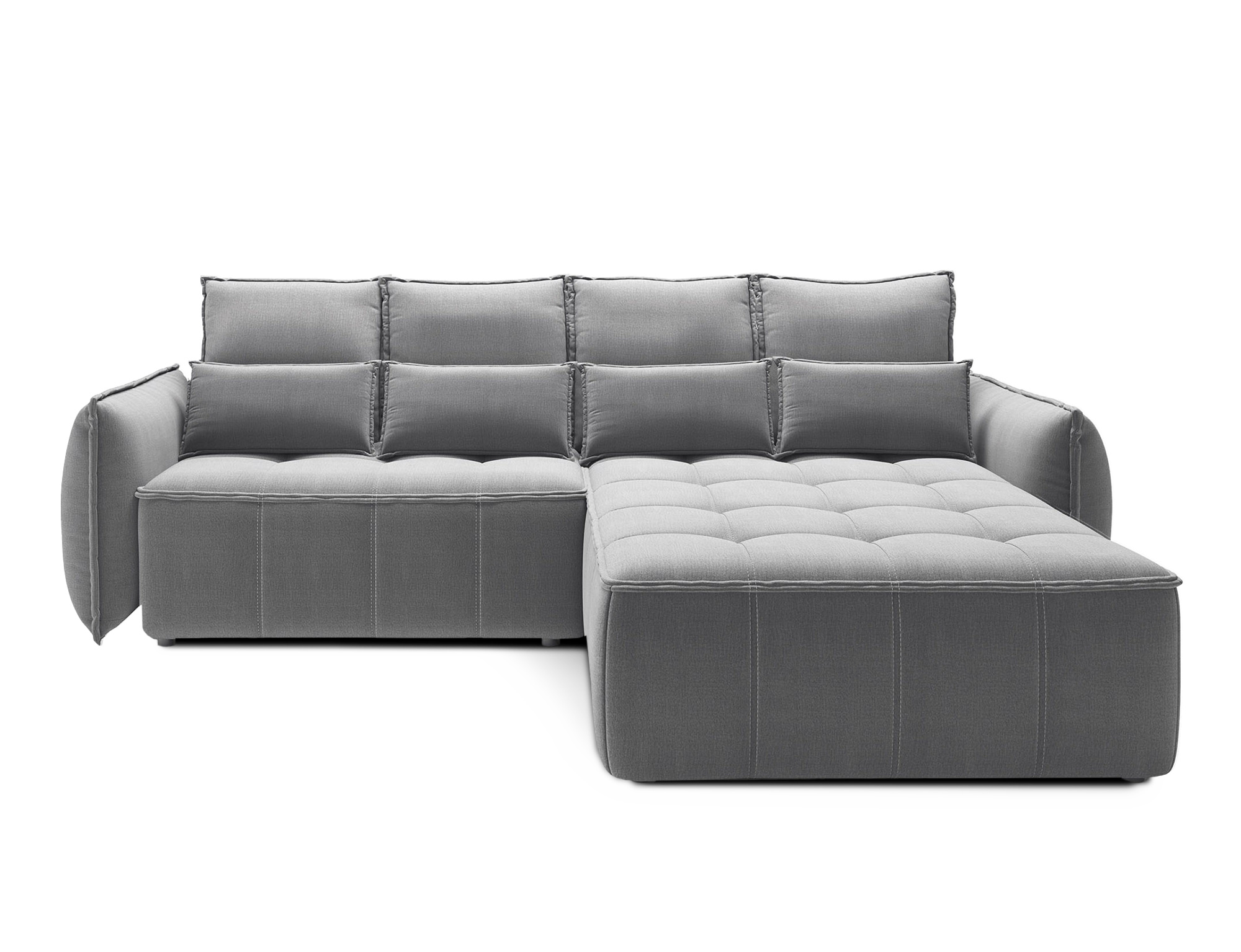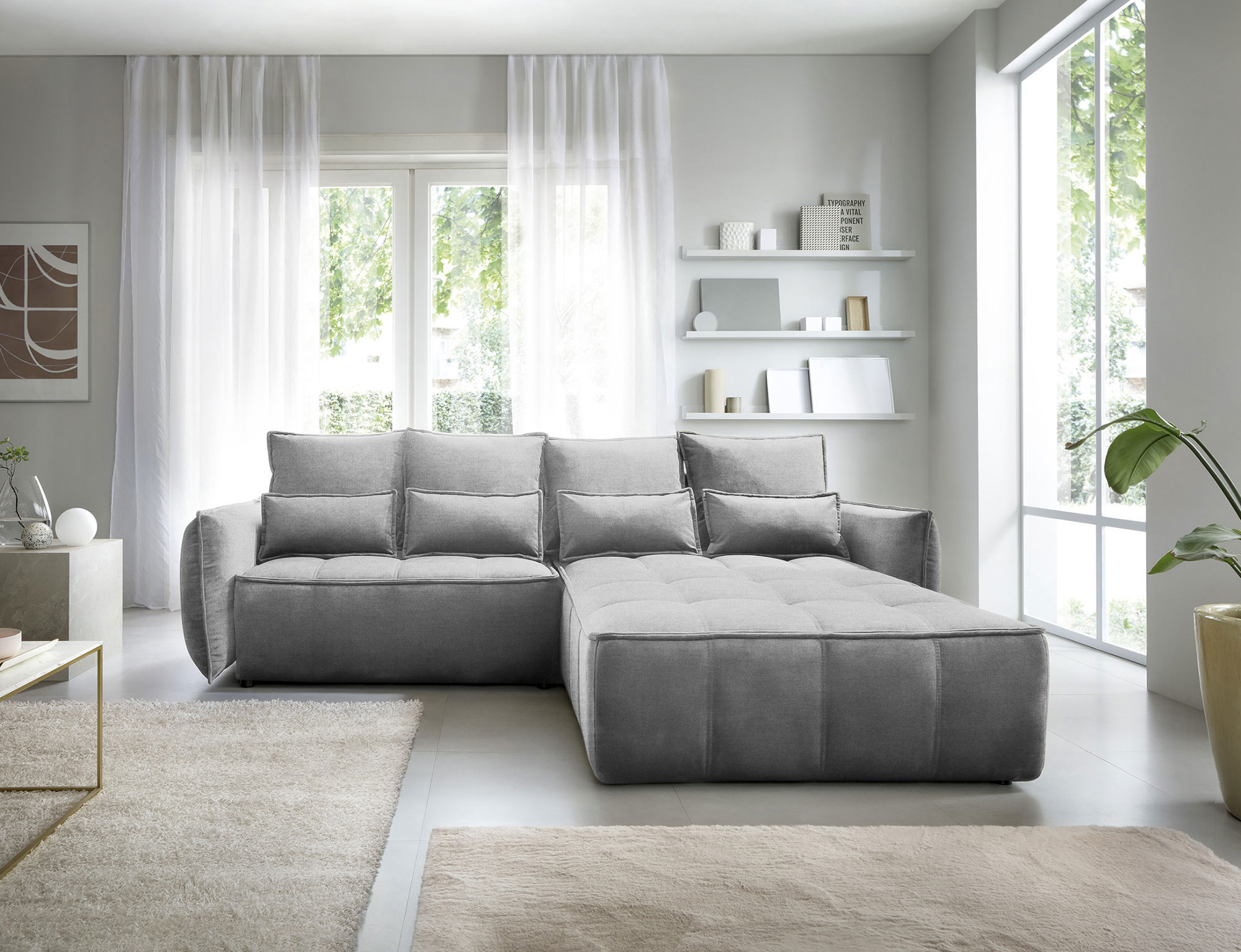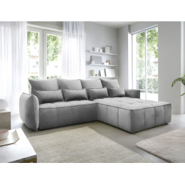 Sedací souprava Campo v provedení Nube 4 má rám z borovicového dřeva. Sedadlo je vyplněno pěnou T2130, HR pěnou, nadýchaným flísem. Je vybavena 4 opěrnými polštáři a 4 bederními polštáři, které jsou vyplněny pěnovým granulátem. Pomocí mechanismu DL vznikne spací plocha o rozměru 222x122 cm. Nožky jsou černé plastové o výšce 2,5 cm. Nosnost soupravy 315 kg. Provedení rohu pravé. Zboží je částečně smontováno.