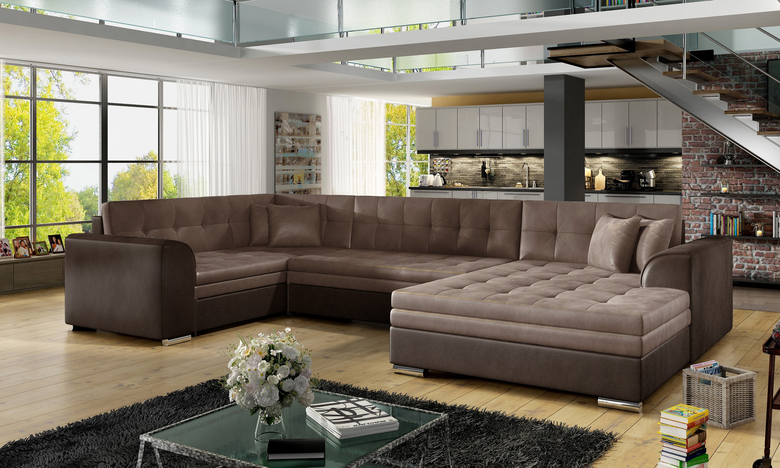 Sedací souprava Damario v barevném provedení Monolith 09/ Monolith 29 má sedáky vyrobené z odolné vlnité pružiny a elastické pěny T30. Rozkladem vznikne spací plocha 275x126 cm. Nožky má v barvě chromu.
