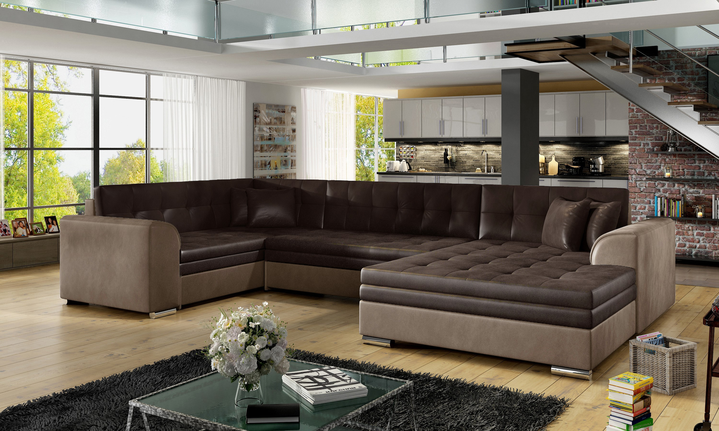 Sedací souprava Damario v barevném provedení Monolith 29/ Monolith 09 má sedáky vyrobené z odolné vlnité pružiny a elastické pěny T30. Rozkladem vznikne spací plocha 275x126 cm. Nožky má v barvě chromu.