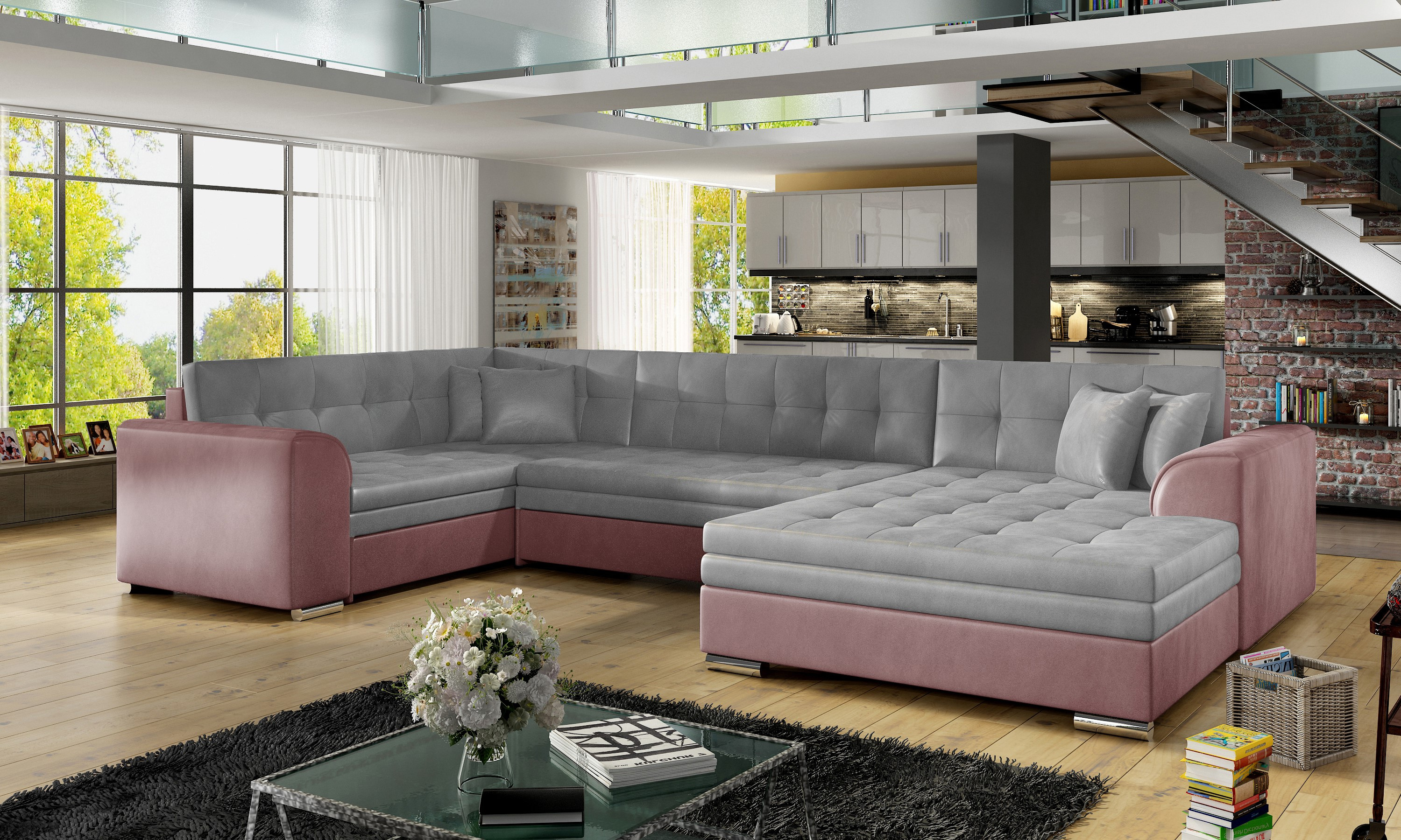 Sedací souprava Damario v barevném provedení Monolith 84/ Monolith 63 má sedáky vyrobené z odolné vlnité pružiny a elastické pěny T30. Rozkladem vznikne spací plocha 275x126 cm. Nožky má v barvě chromu.