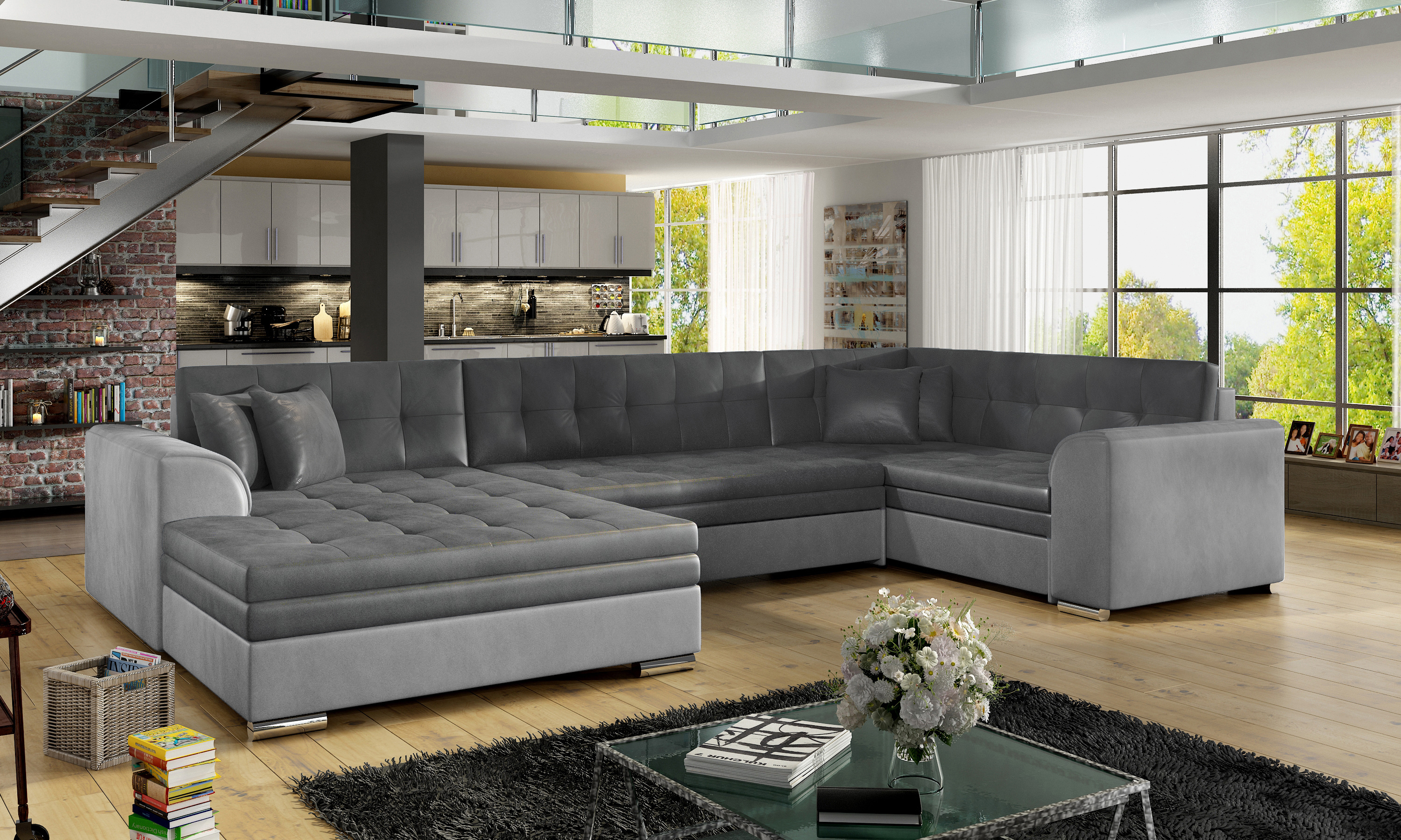 Sedací souprava Damario v barevném provedení Monolith 97/ Monolith 84 má sedáky vyrobené z odolné vlnité pružiny a elastické pěny T30. Rozkladem vznikne spací plocha 275x126 cm. Nožky má v barvě chromu.