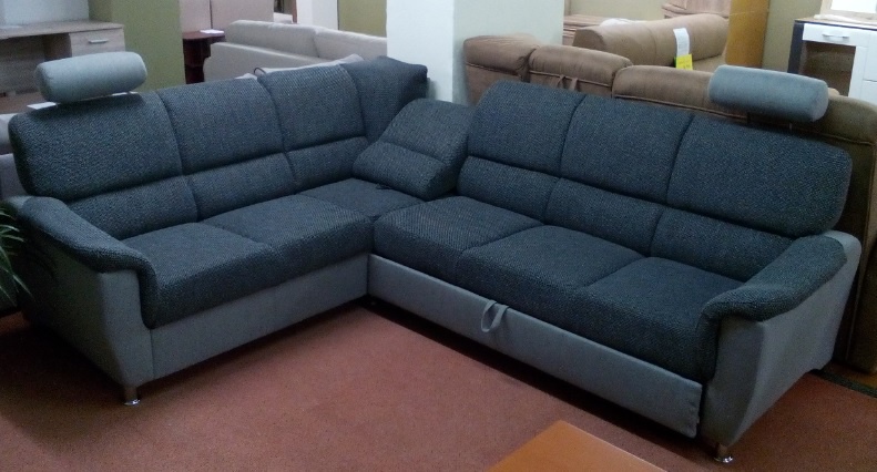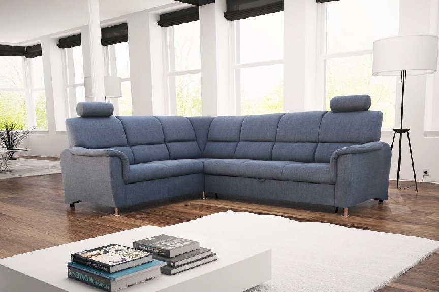 Elegantní rohová sedací souprava rozkládací s praktickým úložným prostorem, vhodná pro občasné přespání. Potahová látka je dle nabídky. Sedací souprava je opatřena velmi pohodlnými záhlavníky. V rohu jsou polohovatelné opěrky zad pro komfortní ležení. Nožky jsou vyrobené z kovu. Základem výplně sedáku jsou vinuté pružiny a kvalitní PUR pěna. Sedací souprava má čalouněná záda a je vhodná do prostoru. V objednávce prosíme o výběr potahové látky a provedení sedací soupravy.