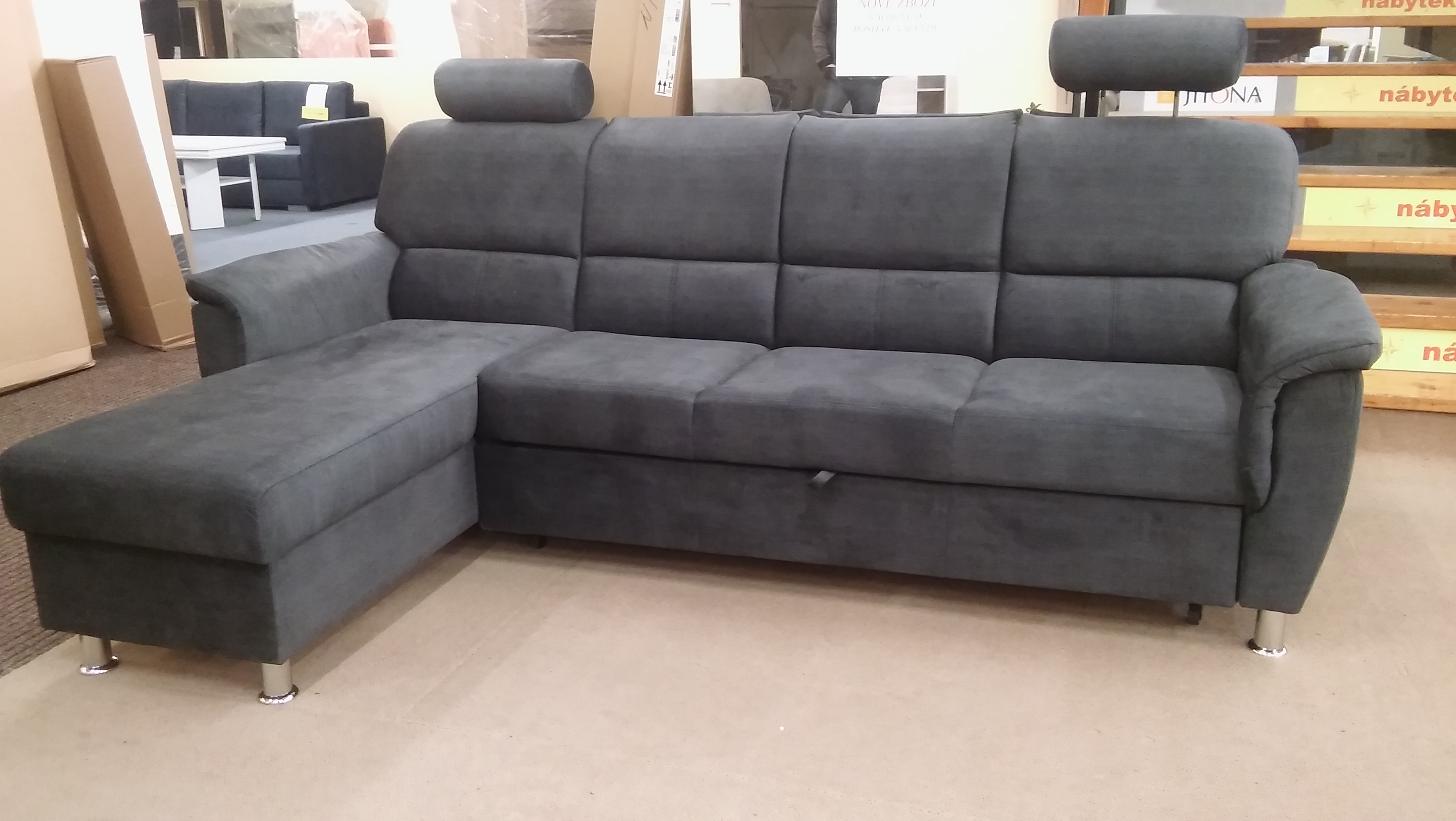Elegantní rohová sedací souprava je rozkládací s praktickým úložným prostorem, vhodná pro občasné přespání. Sedací souprava je opatřena velmi pohodlnými záhlavníky, které Vám zajistí příjemné pohodlí. Základem výplně sedáku jsou vinuté pružiny a kvalitní PUR pěna. Sedací souprava má čalouněná záda a je vhodná do prostoru. Nožky jsou v barvě lesklý chrom. Potahová látka Cairo 37.
