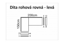 Celočalouněná rohová sedací souprava DITA má kostru tvořenou kombinací masivu a dřevařských velkoplošných materiálů. Sedací plochy s pružinovým jádrem, opěradlové polštáře jsou plněný PUR drť, rozkládání PUR pěna. Její předností je praktické a jednoduché rozkládání a velký úložný prostor. Rozkladem vznikne spací plocha 142x 195 cm pro každodenní spaní. Sedací soupravu je bez područek. Područky jsou dodávány ve dvou rozměrových variantách: