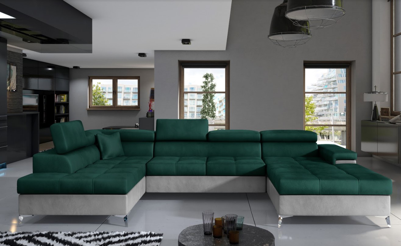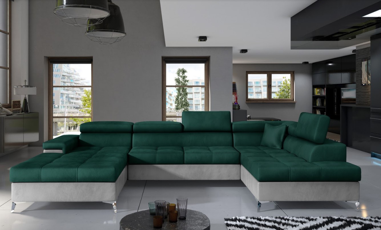 Designová a moderní sedací souprava EDUARDO se skvěle hodí do prostoru Vašeho domova. Konstrukce soupravy je vyrobena z kombinace dřeva a dřevotřískové desky a výplň sedáků tvoří polyuretanová pěna s pružinou typu faliste, které zajistí pohodlné sezení. Eduardo je vyroben v dezénu tmavě zelená/šedá. Soupravu lze rozložit na příležitostné spaní. Má kovové nohy a úložný prostor. Souprava je dostupná v několika barevných variantách. Zboží dodáváme v demontu.
