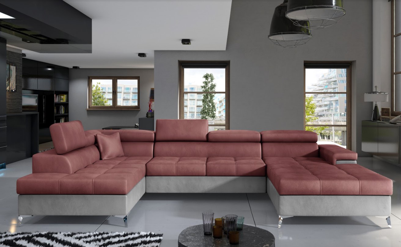 Designová a moderní sedací souprava EDUARDO se skvěle hodí do prostoru Vašeho domova. Konstrukce soupravy je vyrobena z kombinace dřeva a dřevotřískové desky a výplň sedáků tvoří polyuretanová pěna s pružinou typu faliste, které zajistí pohodlné sezení. Eduardo je vyroben v dezén lososová/šedá. Soupravu lze rozložit na příležitostné spaní. Má kovové nohy a úložný prostor. Souprava je dostupná v několika barevných variantách. Zboží dodáváme v demontu.