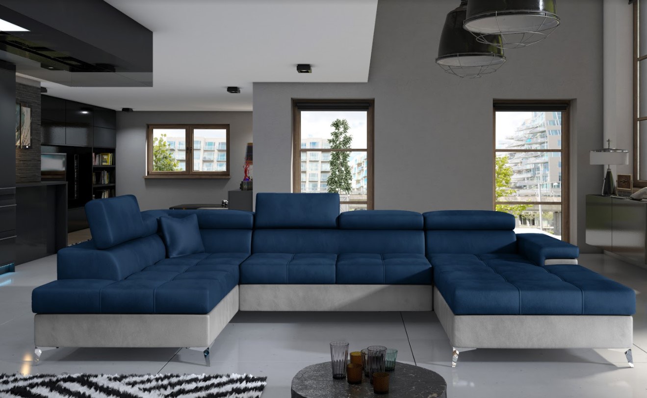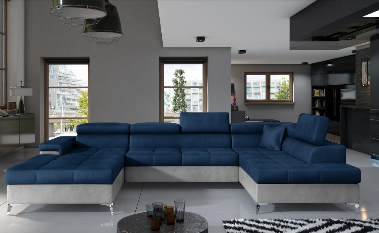 Designová a moderní sedací souprava EDUARDO se skvěle hodí do prostoru Vašeho domova. Konstrukce soupravy je vyrobena z kombinace dřeva a dřevotřískové desky a výplň sedáků tvoří polyuretanová pěna s pružinou typu faliste, které zajistí pohodlné sezení. Eduardo je vyroben v dezénu tmavě modrá/šedá. Soupravu lze rozložit na příležitostné spaní. Má kovové nohy a úložný prostor. Souprava je dostupná v několika barevných variantách. Zboží dodáváme v demontu.