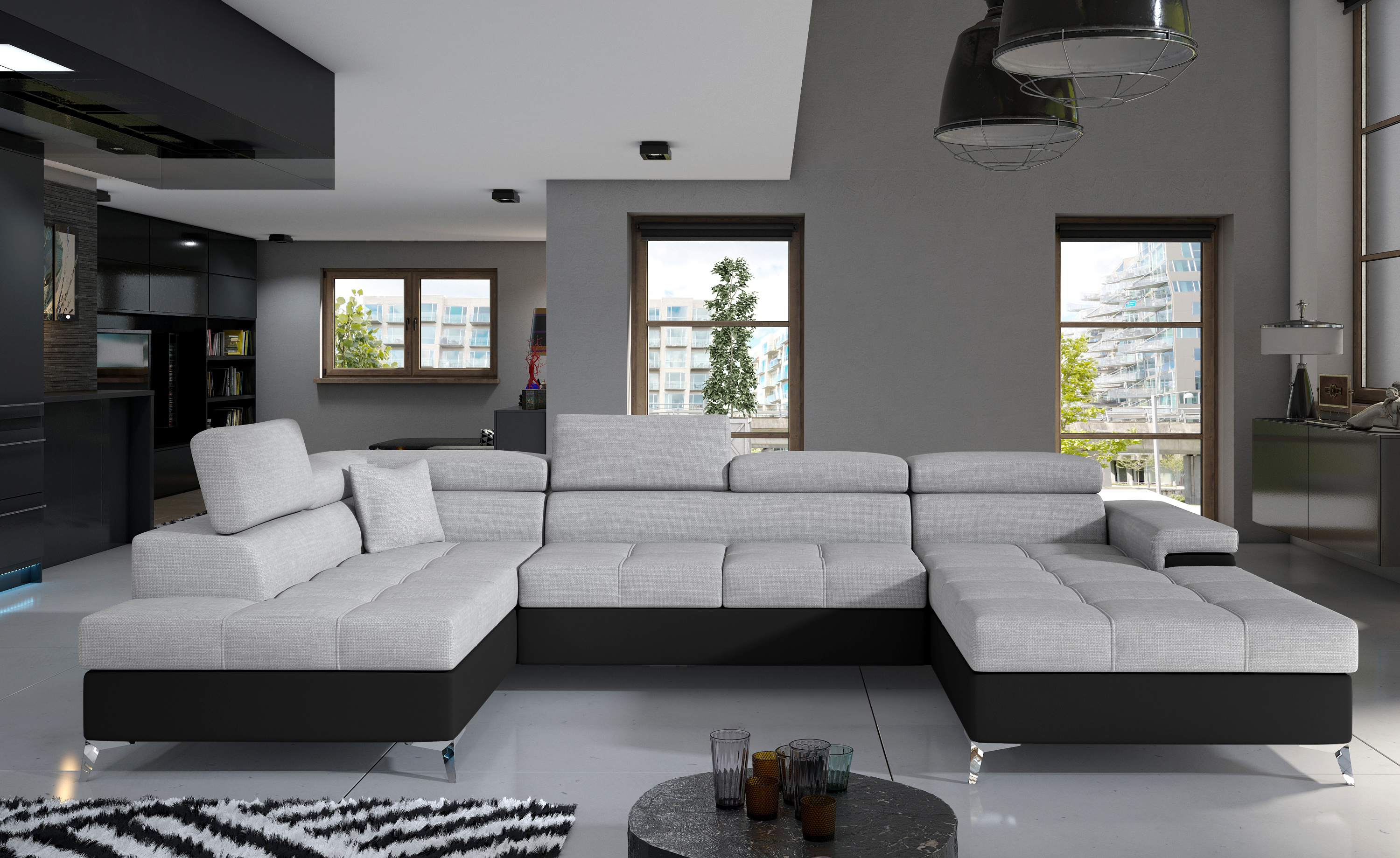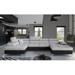 Sedací souprava Eduardo v provedení Sawana 21/ eko kůže Soft 11 má rám z borovicového dřeva. Sedák má vyrobený z odolné vysoce flexibilní HR pěny T3030. Opěradlo má výplň pěny T2542. Rozkladem DL vznikne spací plocha 127x273 cm. Sedací souprava disponuje úložním prostorem, nastavitelnými opěrkami hlavy a širokými područkami. Nosnost pohovky 405 kg. Nohy jsou kovové stříbrné o výšce 10 cm. Provedení rohu levé. Zboží je částečně smontováno.