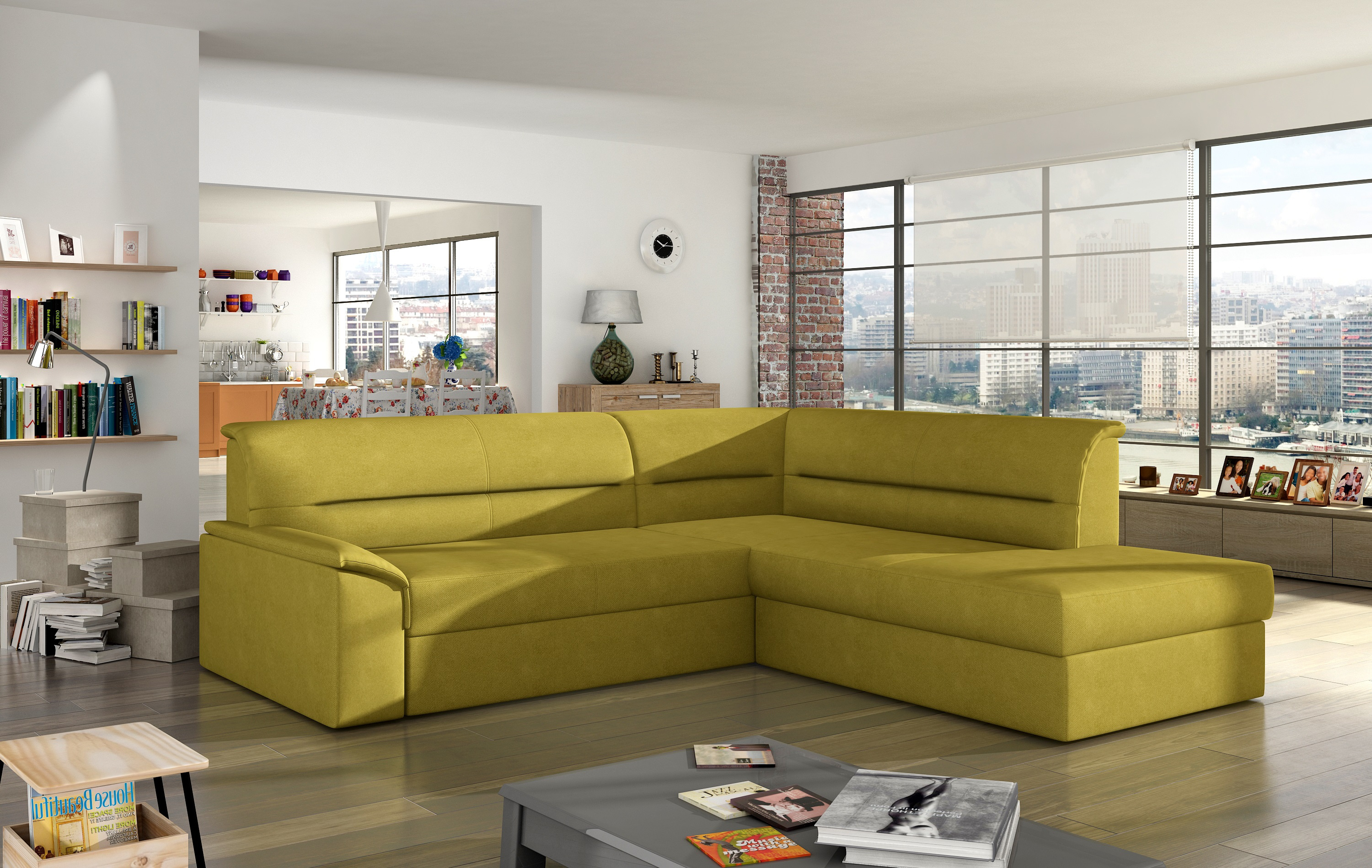 Sedací souprava Elano v provedení Ontario 40 má rám z borovicového dřeva. Sedák má vyrobený v kombinaci vlnité pružiny a odolné vysoce flexibilní HR pěny T3040. Opěradlo má výplň pěny T2542. Rozkladem DL vznikne spací plocha 195x125 cm. Sedací souprava disponuje úložním prostorem, jemným prošíváním na opěradlech a šikmou loketní opěrkou. Nosnost pohovky 315 kg. Nohy jsou černé plastové o výšce 6,5 cm. Provedení rohu pravé. Zboží je částečně smontováno.