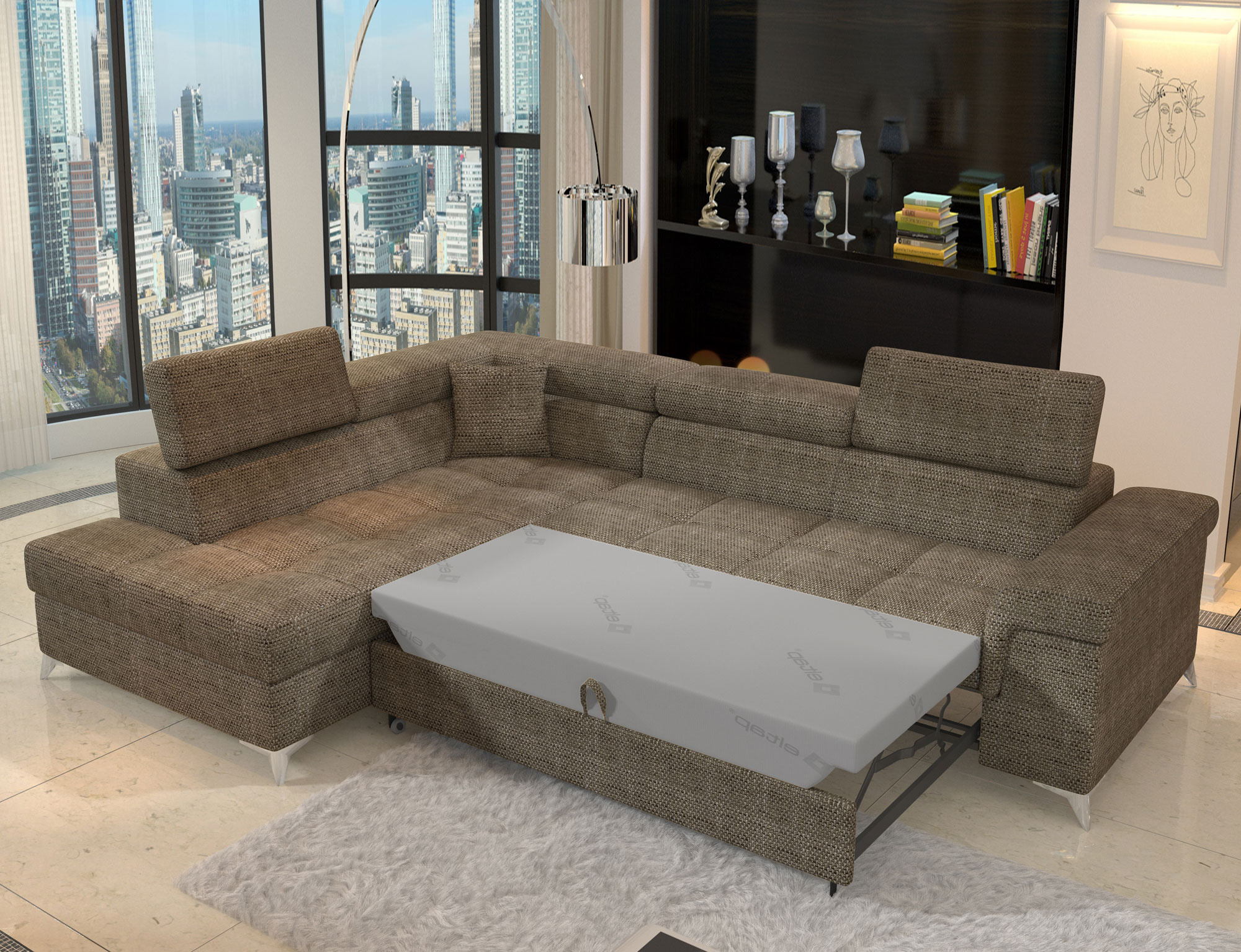Sedací souprava Eridano v provedení Berlin 03 má rám z borovicového dřeva. Sedadlo je vyplněno vlnovou pružinou s pěnou T3030 a vysoce kvalitní elastickou HR pěnou. Pomocí mechanismu DL vznikne spací plocha o rozměru 193x123 cm. Nožky jsou kovové stříbrné o výšce 9 cm. Disponuje úložným prostorem. Nosnost soupravy 315 kg. Provedení rohu levé. Dekorační polštářek je součástí. Zboží je částečně smontováno.