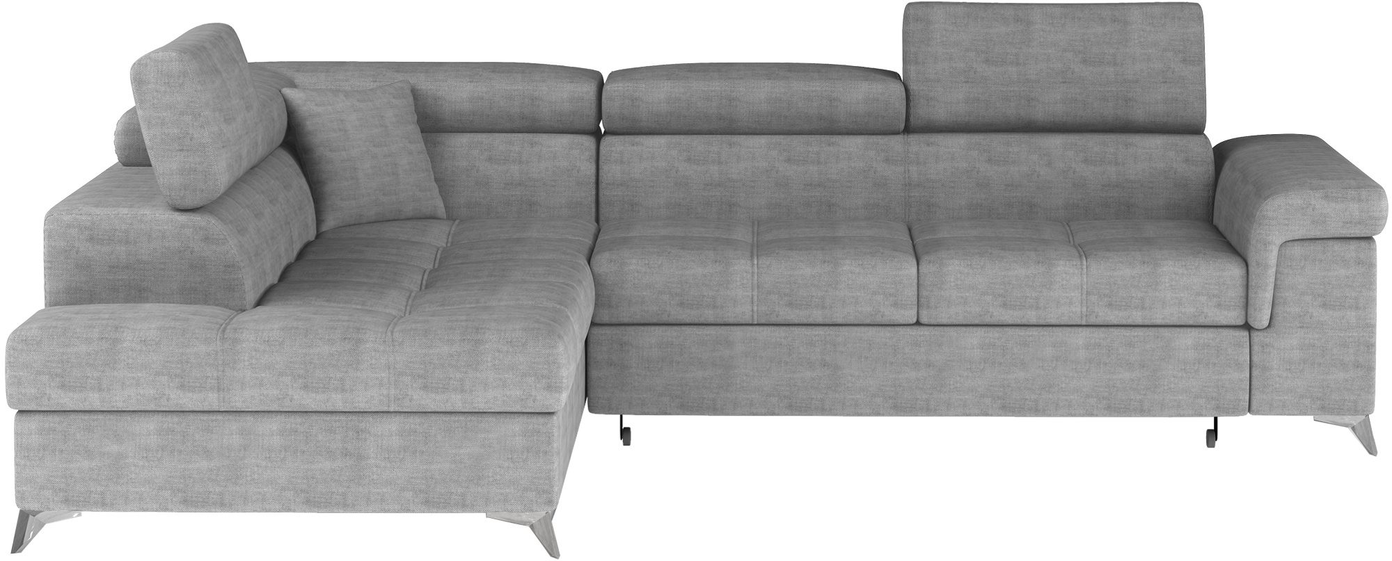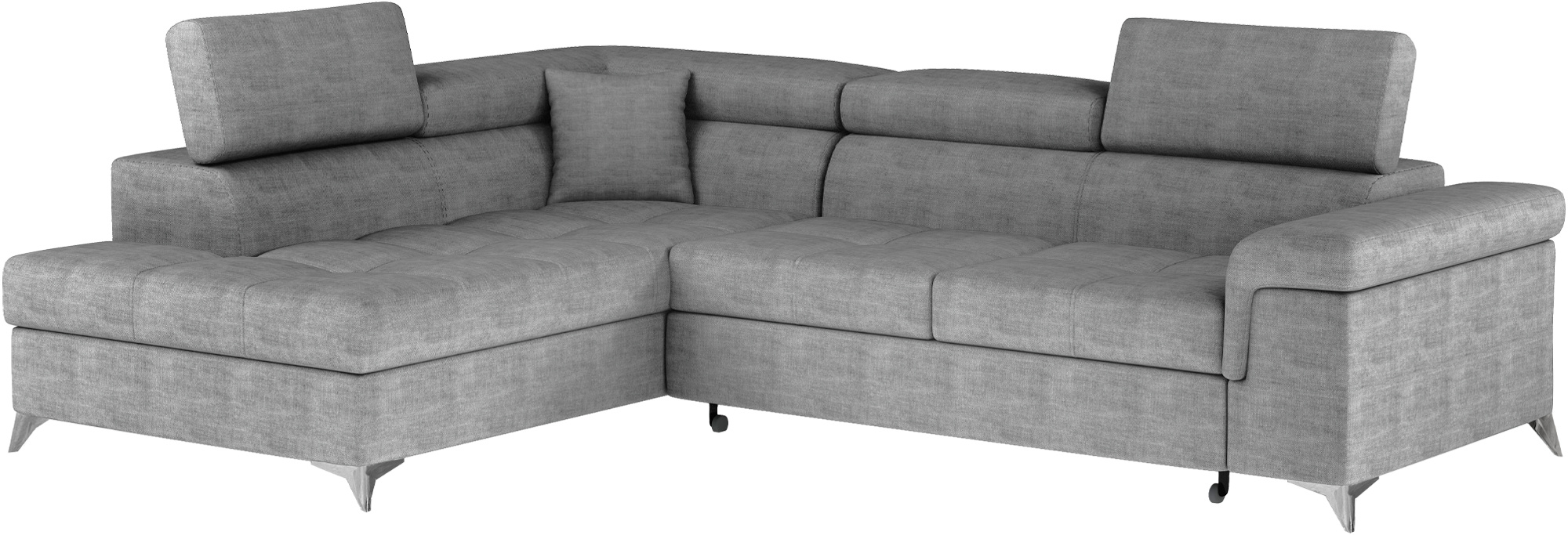 Sedací souprava Eridano v provedení Manhattan 03 má rám z borovicového dřeva. Sedadlo je vyplněno vlnovou pružinou s pěnou T3030 a vysoce kvalitní elastickou HR pěnou. Pomocí mechanismu DL vznikne spací plocha o rozměru 193x123 cm. Nožky jsou kovové stříbrné o výšce 9 cm. Disponuje úložným prostorem. Nosnost soupravy 315 kg. Provedení rohu levé. Dekorační polštářek je součástí. Zboží je částečně smontováno.