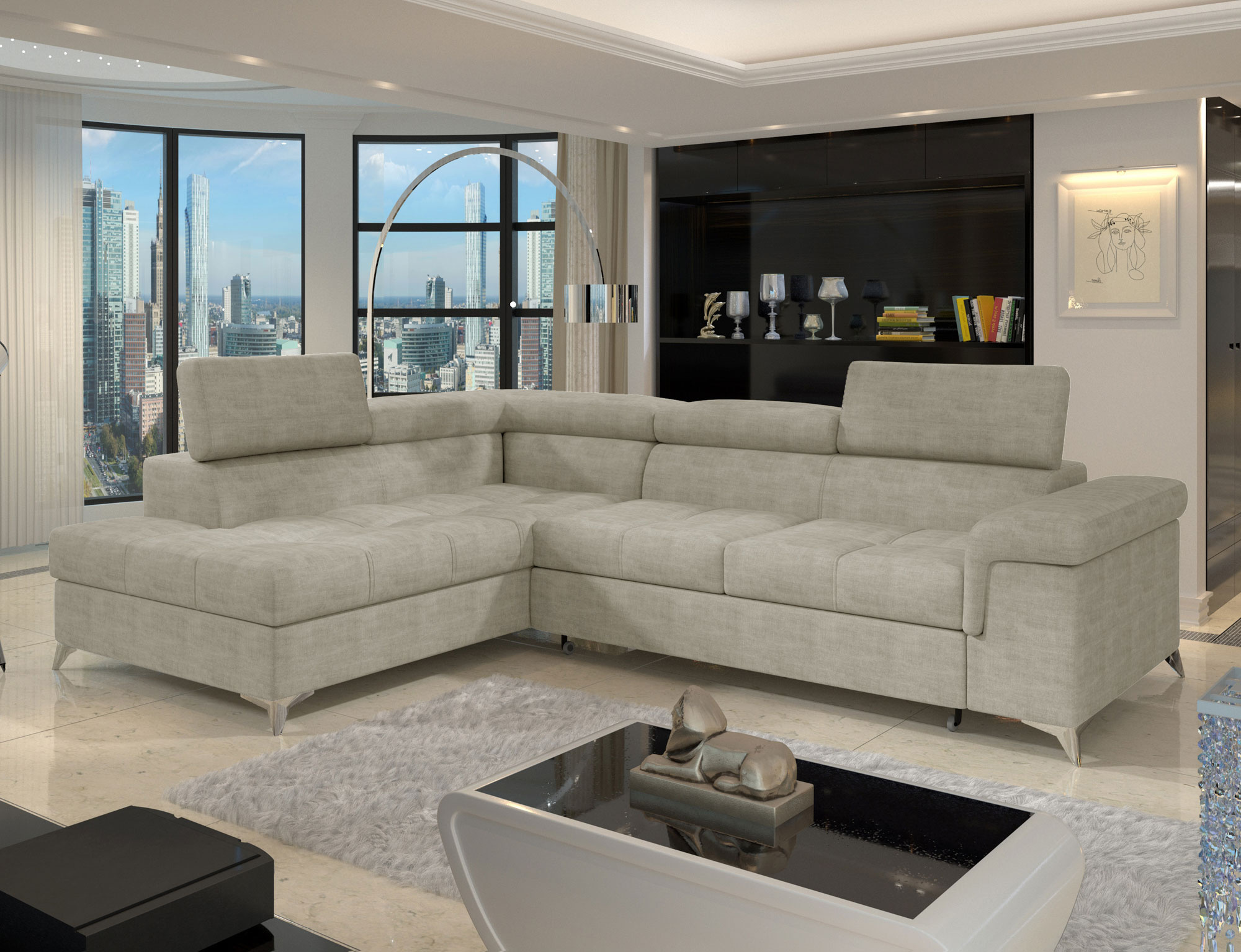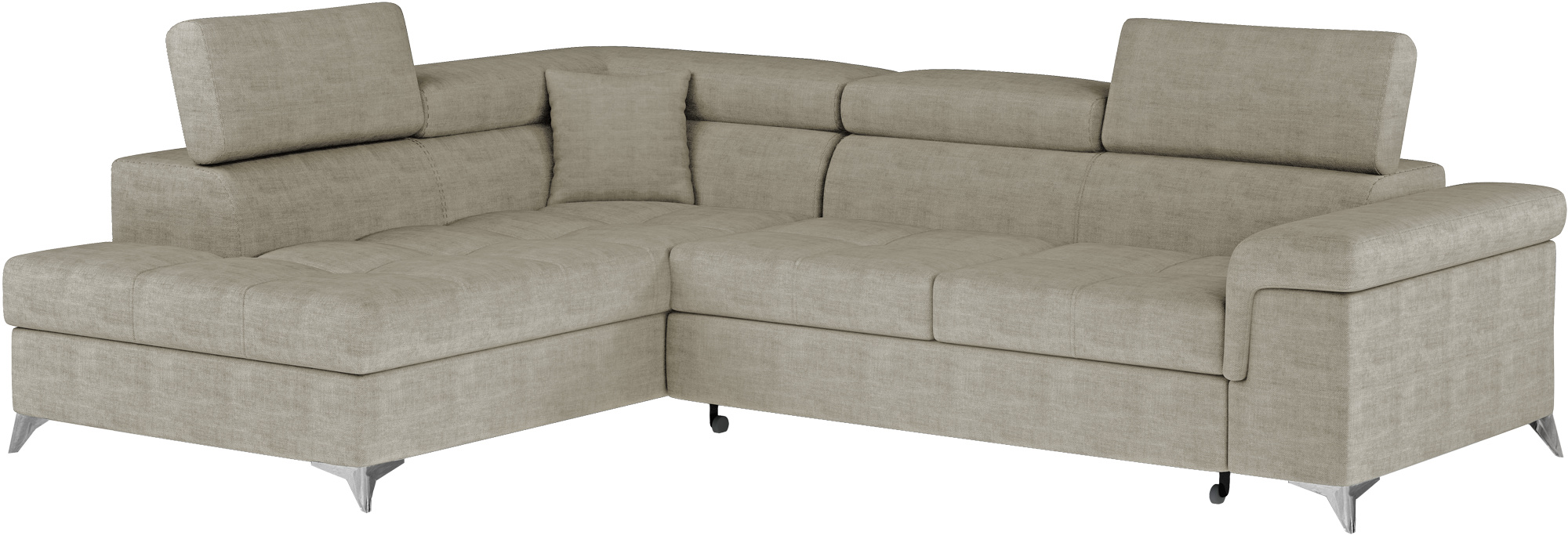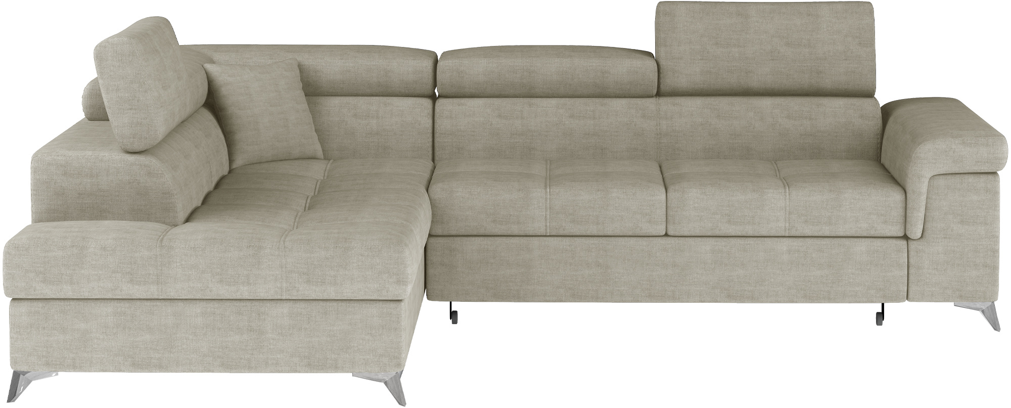 Sedací souprava Eridano v provedení Manhattan 20 má rám z borovicového dřeva. Sedadlo je vyplněno vlnovou pružinou s pěnou T3030 a vysoce kvalitní elastickou HR pěnou. Pomocí mechanismu DL vznikne spací plocha o rozměru 193x123 cm. Nožky jsou kovové stříbrné o výšce 9 cm. Disponuje úložným prostorem. Nosnost soupravy 315 kg. Provedení rohu levé. Dekorační polštářek je součástí. Zboží je částečně smontováno.