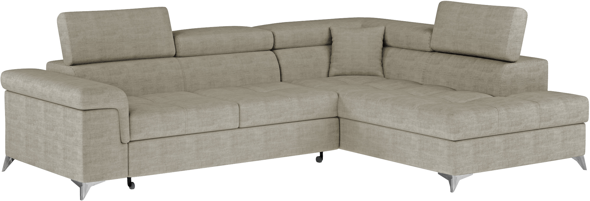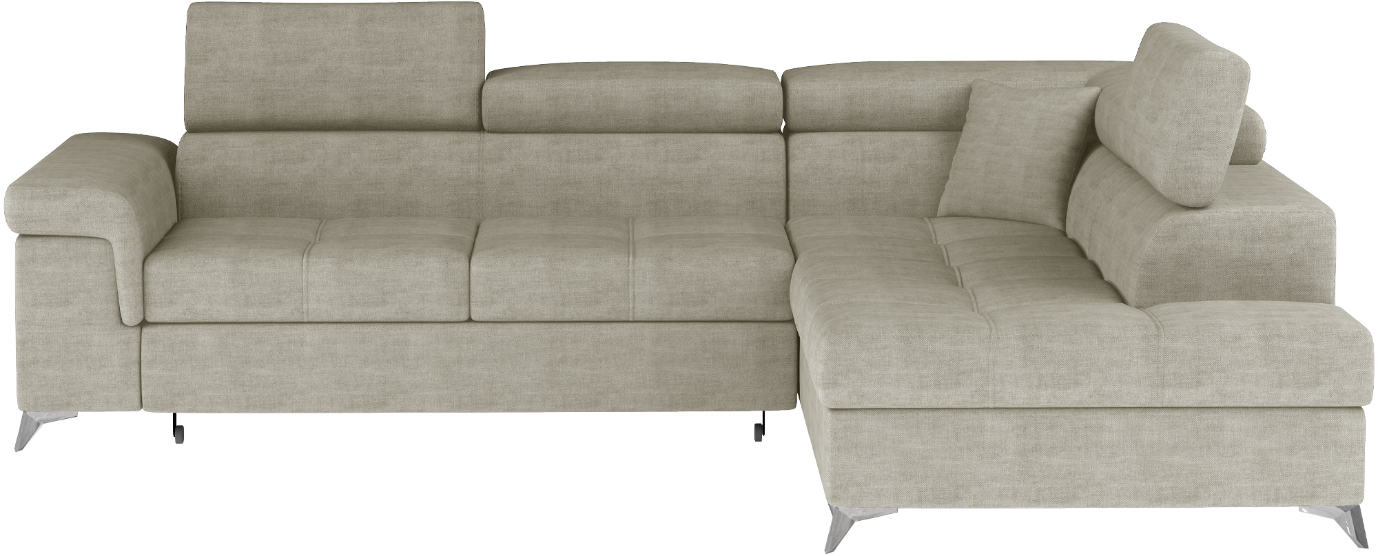 Sedací souprava Eridano v provedení Manhattan 20 má rám z borovicového dřeva. Sedadlo je vyplněno vlnovou pružinou s pěnou T3030 a vysoce kvalitní elastickou HR pěnou. Pomocí mechanismu DL vznikne spací plocha o rozměru 193x123 cm. Nožky jsou kovové stříbrné o výšce 9 cm. Disponuje úložným prostorem. Nosnost soupravy 315 kg. Provedení rohu pravé. Dekorační polštářek je součástí. Zboží je částečně smontováno.