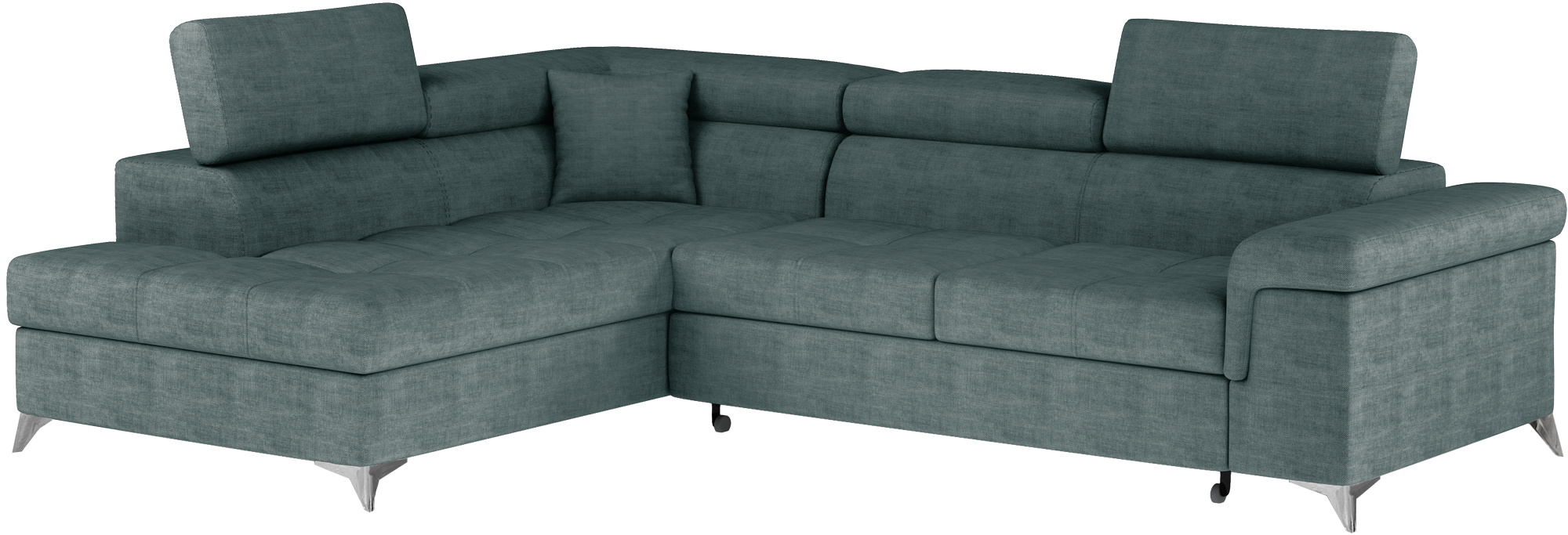 Sedací souprava Eridano v provedení Manhattan 38 má rám z borovicového dřeva. Sedadlo je vyplněno vlnovou pružinou s pěnou T3030 a vysoce kvalitní elastickou HR pěnou. Pomocí mechanismu DL vznikne spací plocha o rozměru 193x123 cm. Nožky jsou kovové stříbrné o výšce 9 cm. Disponuje úložným prostorem. Nosnost soupravy 315 kg. Provedení rohu levé. Dekorační polštářek je součástí. Zboží je částečně smontováno.