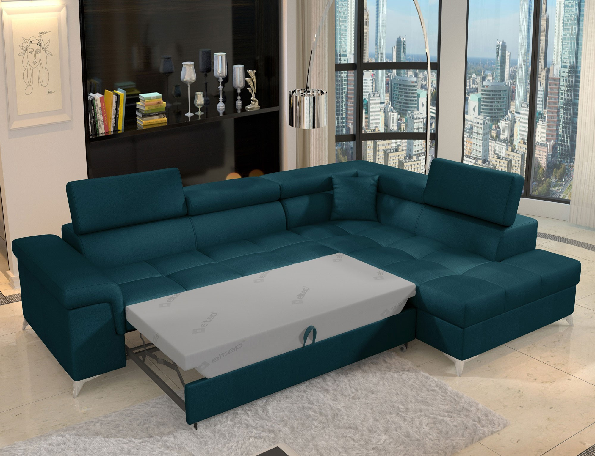 Sedací souprava Eridano v provedení Monolith 77 má rám z borovicového dřeva. Sedadlo je vyplněno vlnovou pružinou s pěnou T3030 a vysoce kvalitní elastickou HR pěnou. Pomocí mechanismu DL vznikne spací plocha o rozměru 193x123 cm. Nožky jsou kovové stříbrné o výšce 9 cm. Disponuje úložným prostorem. Nosnost soupravy 315 kg. Provedení rohu pravé. Dekorační polštářek je součástí. Zboží je částečně smontováno.