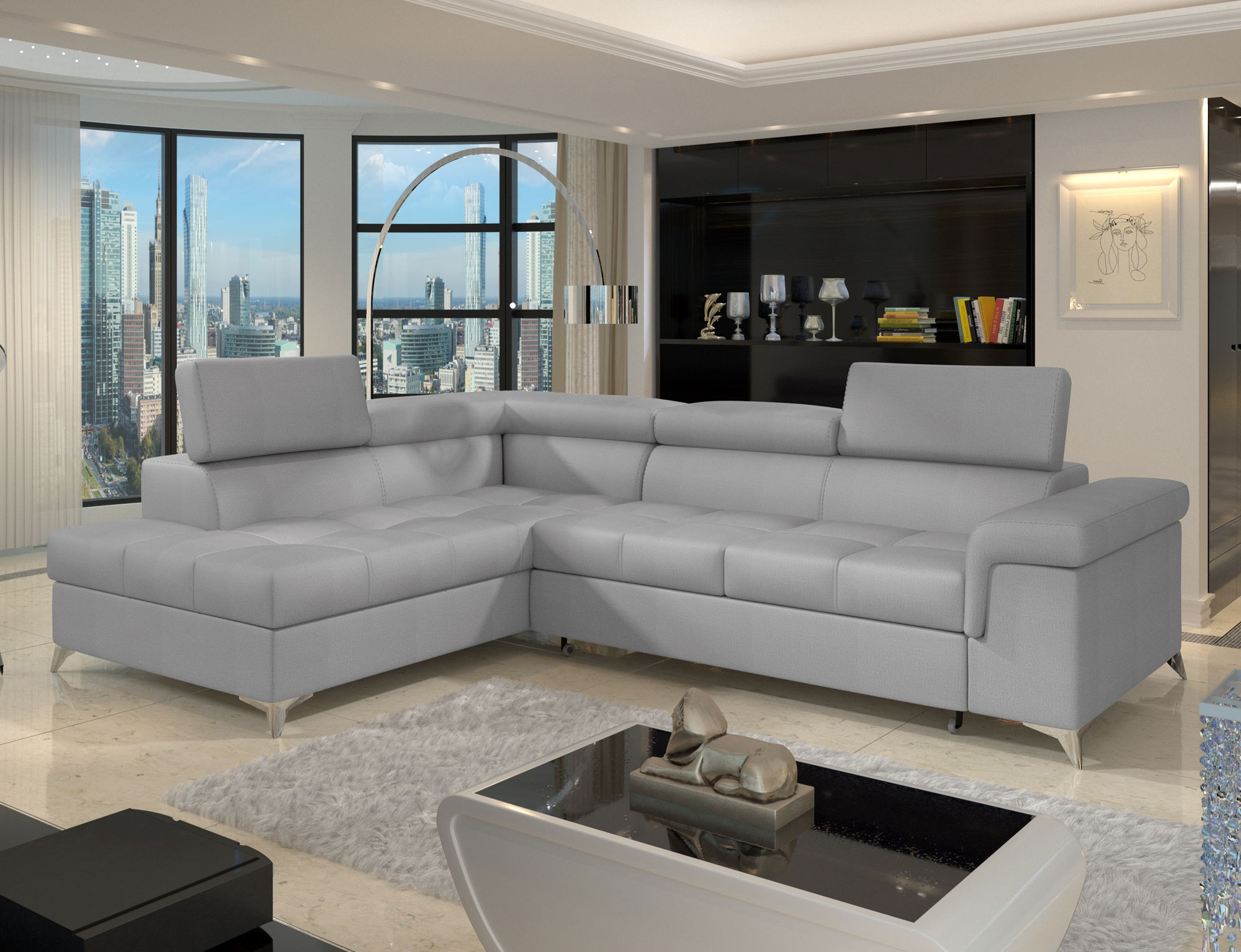 Sedací souprava Eridano v provedení Monolith 84 má rám z borovicového dřeva. Sedadlo je vyplněno vlnovou pružinou s pěnou T3030 a vysoce kvalitní elastickou HR pěnou. Pomocí mechanismu DL vznikne spací plocha o rozměru 193x123 cm. Nožky jsou kovové stříbrné o výšce 9 cm. Disponuje úložným prostorem. Nosnost soupravy 315 kg. Provedení rohu levé. Dekorační polštářek je součástí. Zboží je částečně smontováno.