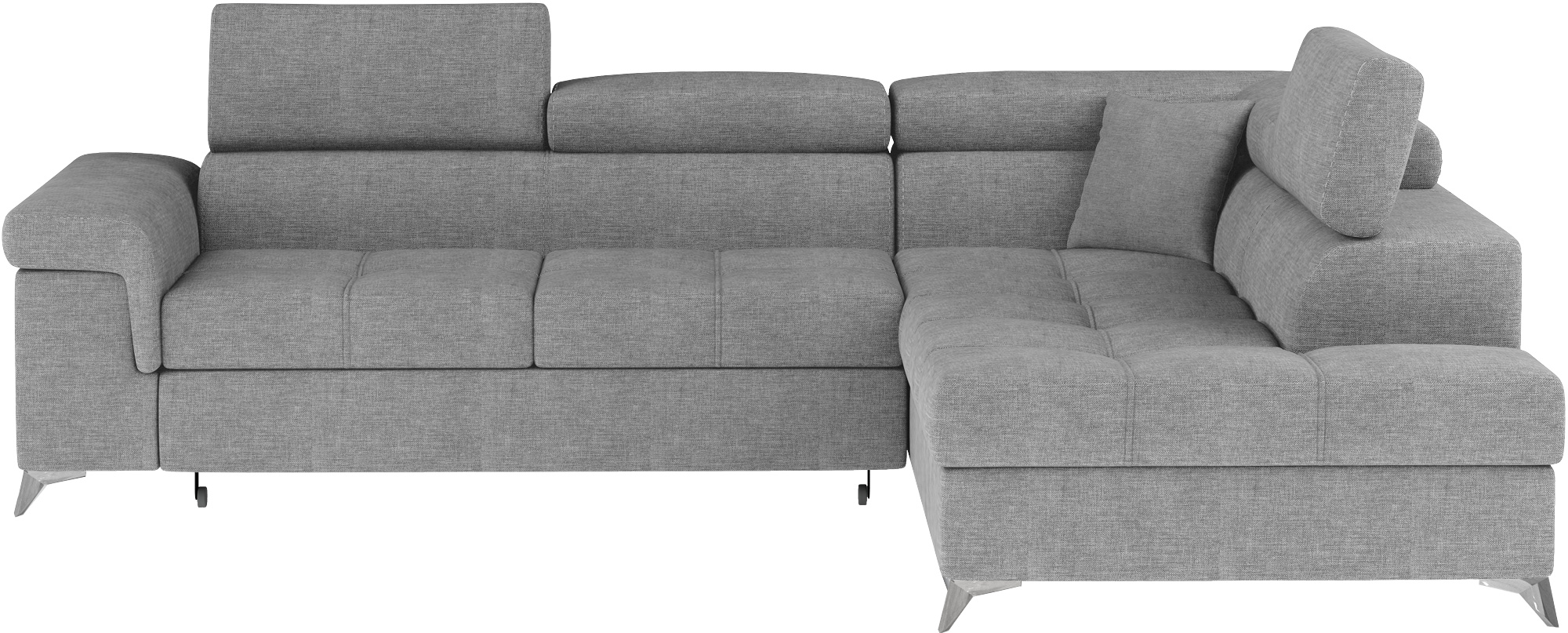 Sedací souprava Eridano v provedení Raquel 04 má rám z borovicového dřeva. Sedadlo je vyplněno vlnovou pružinou s pěnou T3030 a vysoce kvalitní elastickou HR pěnou. Pomocí mechanismu DL vznikne spací plocha o rozměru 193x123 cm. Nožky jsou kovové stříbrné o výšce 9 cm. Disponuje úložným prostorem. Nosnost soupravy 315 kg. Provedení rohu pravé. Dekorační polštářek je součástí. Zboží je částečně smontováno.