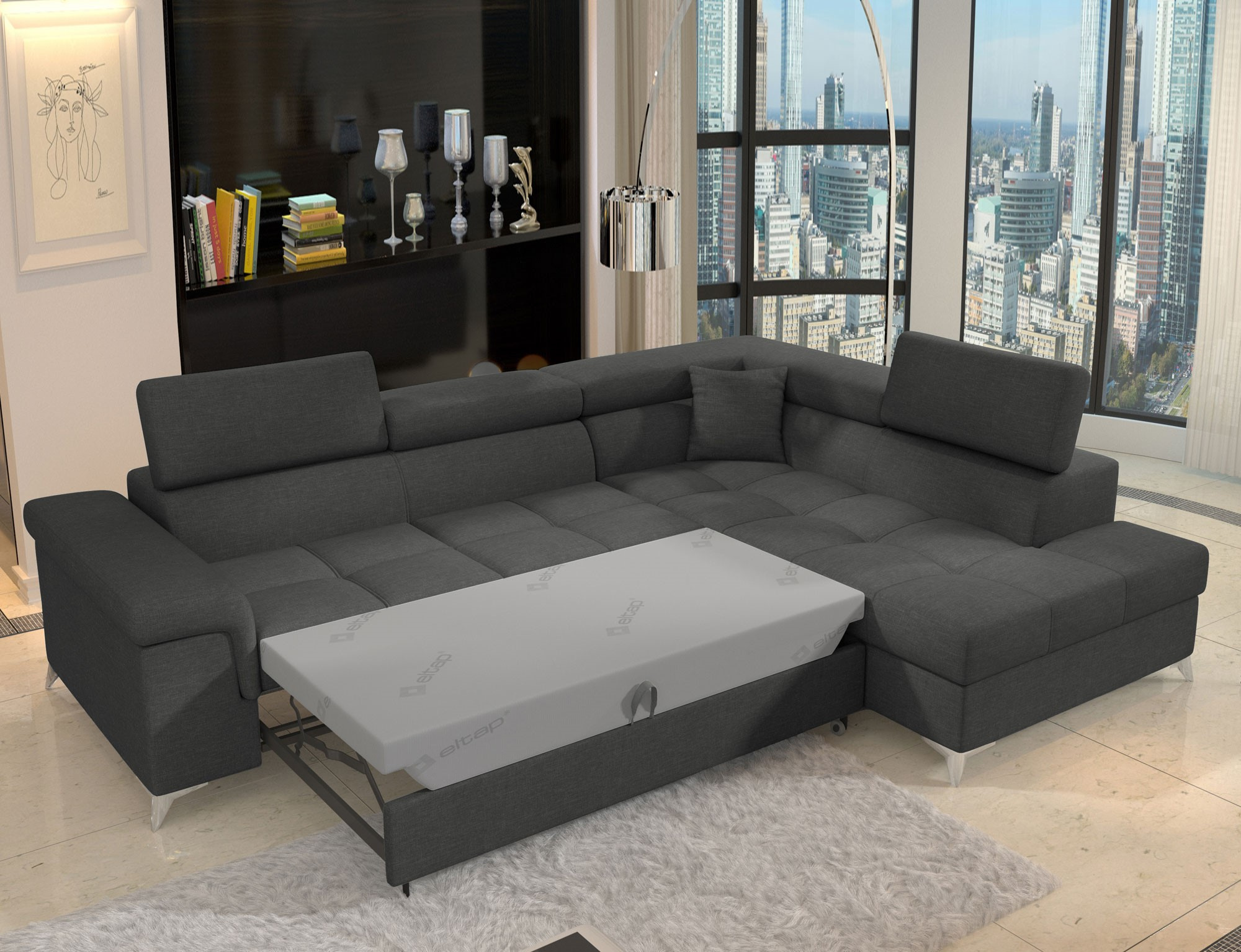 Sedací souprava Eridano v provedení Sawana 21 má rám z borovicového dřeva. Sedadlo je vyplněno vlnovou pružinou s pěnou T3030 a vysoce kvalitní elastickou HR pěnou. Pomocí mechanismu DL vznikne spací plocha o rozměru 193x123 cm. Nožky jsou kovové stříbrné o výšce 9 cm. Disponuje úložným prostorem. Nosnost soupravy 315 kg. Provedení rohu pravé. Dekorační polštářek je součástí. Zboží je částečně smontováno.