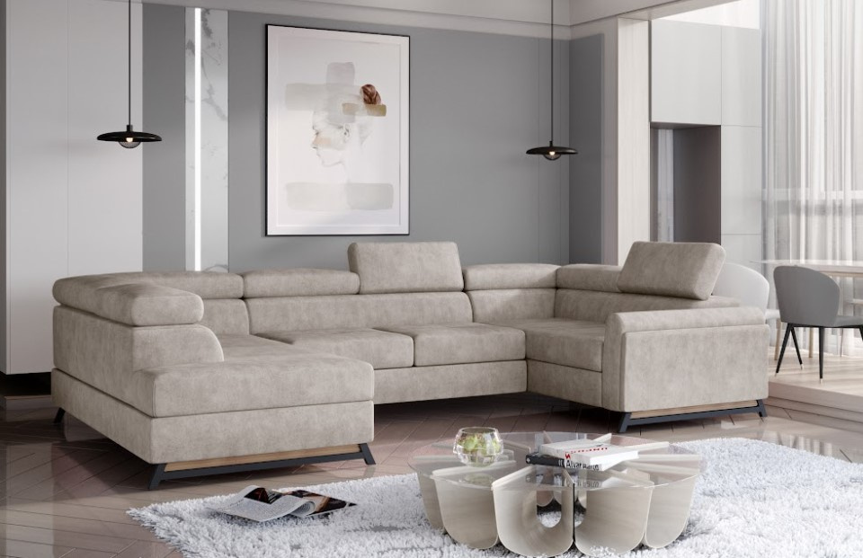 Rohová sedací souprava ESCADA ve tvaru písmene U je vkusný model klasického vzhledu. V kombinaci komfortu, klasického designu a pečlivě vybrané barvy je na špičkové úrovni. Jedinečným detailem jsou nastavitelné opěrky hlavy o výšce 25 centimetrů. Díky nim se budete vždy cítit výjimečně a maximálně pohodlně. Vaše páteř vám poděkuje za tuto formu relaxace. Sedací souprava disponuje úložným prostorem na lůžkoviny. Je rozkládací, spací plocha je 110 x 250 cm. Sedák je vyroben z unikátních pěn - T30 a HR, které zvyšují pružnost sedačky a zabraňují tvorbě nevzhledných prohlubenin v její konstrukci. Unikátní design sedací soupravy je ovlivněn 6 cm vysokými nohami, které jsou vyrobeny z černého kovu a lakovaného dřeva. Tuto sedací soupravu lze vyrobit v pravém či levém provedení. Potahová látka jako na hlavní fotografii.
