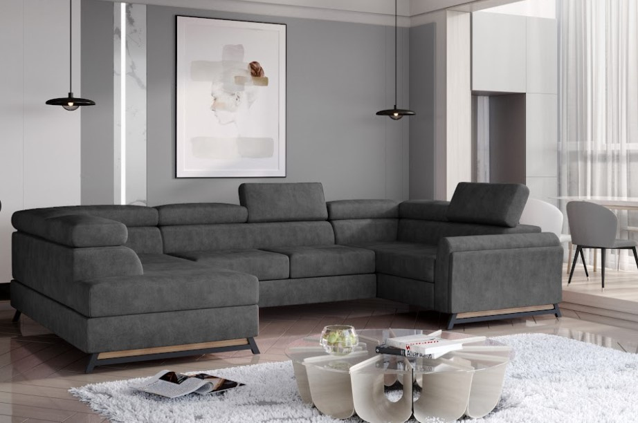 Rohová sedací souprava ESCADA ve tvaru písmene U je vkusný model klasického vzhledu. V kombinaci komfortu, klasického designu a pečlivě vybrané barvy je na špičkové úrovni. Jedinečným detailem jsou nastavitelné opěrky hlavy o výšce 25 centimetrů. Díky nim se budete vždy cítit výjimečně a maximálně pohodlně. Vaše páteř vám poděkuje za tuto formu relaxace. Sedací souprava disponuje úložným prostorem na lůžkoviny. Je rozkládací, spací plocha je 110 x 250 cm. Sedák je vyroben z unikátních pěn - T30 a HR, které zvyšují pružnost sedačky a zabraňují tvorbě nevzhledných prohlubenin v její konstrukci. Unikátní design sedací soupravy je ovlivněn 6 cm vysokými nohami, které jsou vyrobeny z černého kovu a lakovaného dřeva. Tuto sedací soupravu lze vyrobit v pravém či levém provedení. Potahová látka jako na hlavní fotografii.