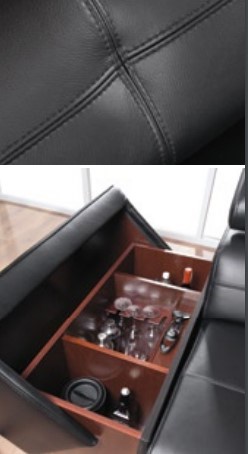 Luxusní kožená rohová sedací souprava s barem (š.45 x hl.100 cm)je vyrobena z pravé hovězí kůže,včetně zadní strany a boků. Výplň sedáků je vysoce kvalitní polyuretanová pěna s pružinou bonel. Prošití v ceně. Má regulovatelné záhlavníky, které lze napolohovat tak, abyste měli pohodlí. Nožky jsou kovové. Sedací souprava je bez rozkladu, ale je možnost rozklad dokoupit (6.577,-Kč), je určen pouze na občasné přespání. Možnost výběru barvy kůže. Vámi zvolenou variantu barvy kůže (dle přiloženého vzorníku) uveďte do objednávky.
