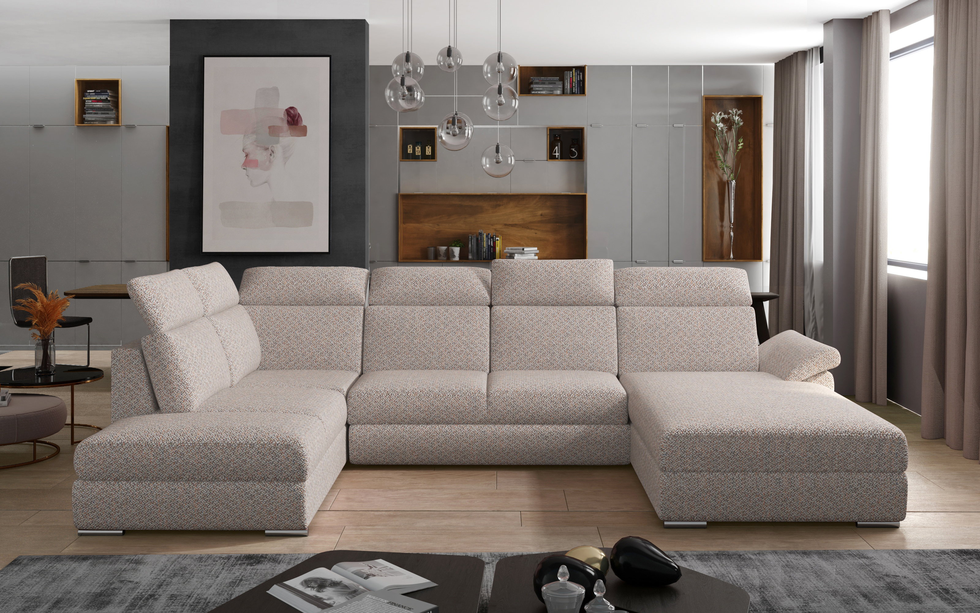 Sedací souprava Evanell v provedení Arte 80A má rám z borovicového dřeva. Sedák má vyrobený z odolných vlnitých pružin a pružné pěny T3030. Rozkladem DL vznikne spací plocha 125x265 cm. Sedací souprava disponuje úložním prostorem, nastavitelnými opěrkami hlavy a šikmou loketní opěrkou. Nosnost pohovky 450 kg. Nohy jsou stříbrné plastové o výšce 4,5 cm. Provedení rohu pravé. Zboží je částečně smontováno.