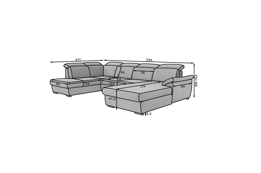 Sedací souprava Evanell v provedení Mat Velvet 99 má rám z borovicového dřeva. Sedák má vyrobený z odolných vlnitých pružin a pružné pěny T3030. Rozkladem DL vznikne spací plocha 125x265 cm. Sedací souprava disponuje úložním prostorem, nastavitelnými opěrkami hlavy a šikmou loketní opěrkou. Nosnost pohovky 450 kg. Nohy jsou stříbrné plastové o výšce 4,5 cm. Provedení rohu pravé. Zboží je částečně smontováno.