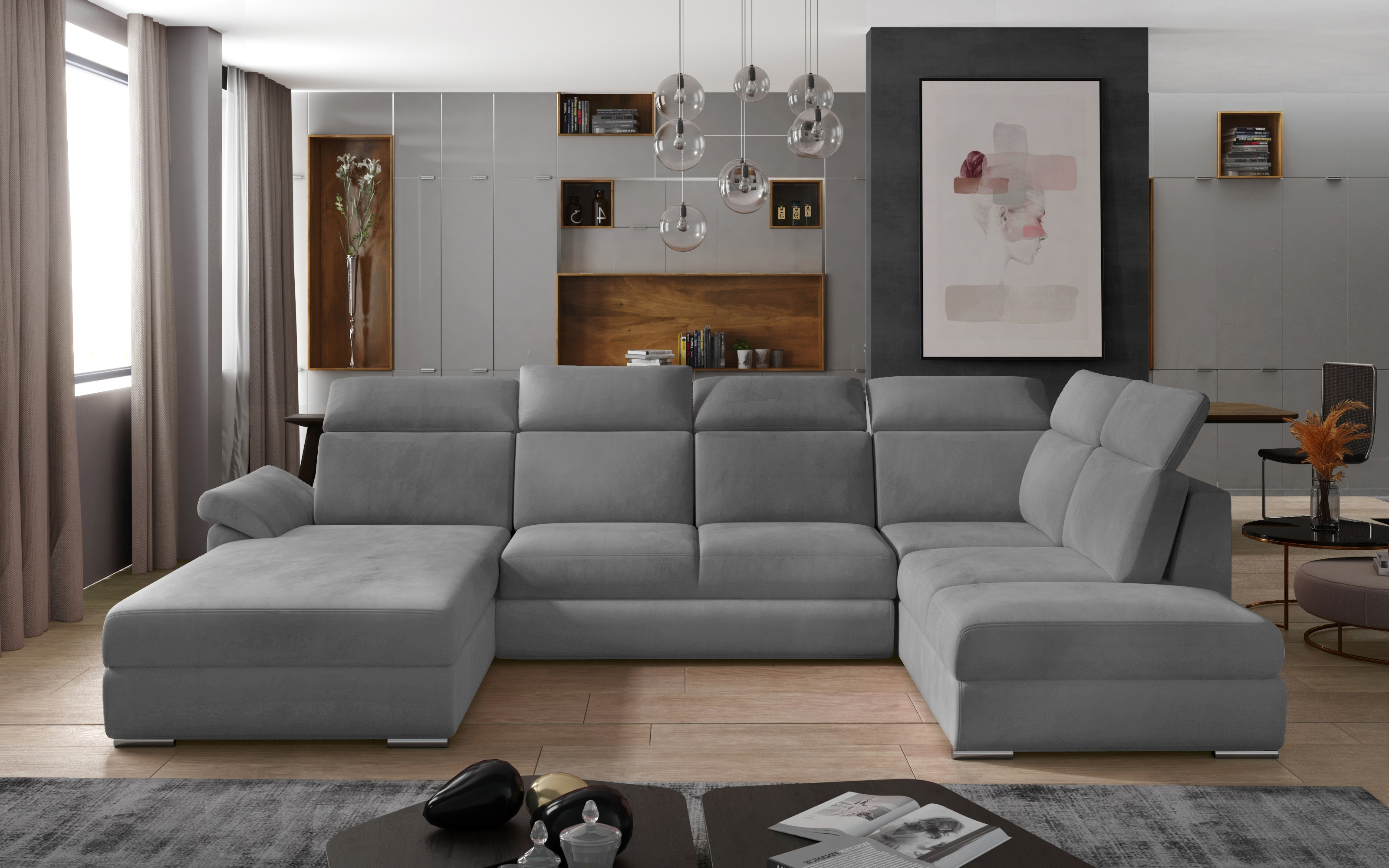 Sedací souprava Evanell v provedení Monolith 84 má rám z borovicového dřeva. Sedák má vyrobený z odolných vlnitých pružin a pružné pěny T3030. Rozkladem DL vznikne spací plocha 125x265 cm. Sedací souprava disponuje úložním prostorem, nastavitelnými opěrkami hlavy a šikmou loketní opěrkou. Nosnost pohovky 450 kg. Nohy jsou stříbrné plastové o výšce 4,5 cm. Provedení rohu levé. Zboží je částečně smontováno.