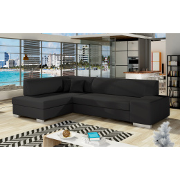 Sedací souprava Fabio v provedení eko kůže Soft 11 má rám z borovicového dřeva. Sedadlo je vyplněno vlnitou pružinou a vysoce kvalitní elastickou pěnou T30. Pomocí mechanismu DL vznikne spací plocha o rozměru 195x125 cm. Nožky jsou plastové stříbrné o výšce 8 cm. Disponuje úložným prostorem. Nosnost soupravy 315 kg. Provedení rohu levé. Dekorační polštáře jsou součástí. Zboží je částečně smontováno.