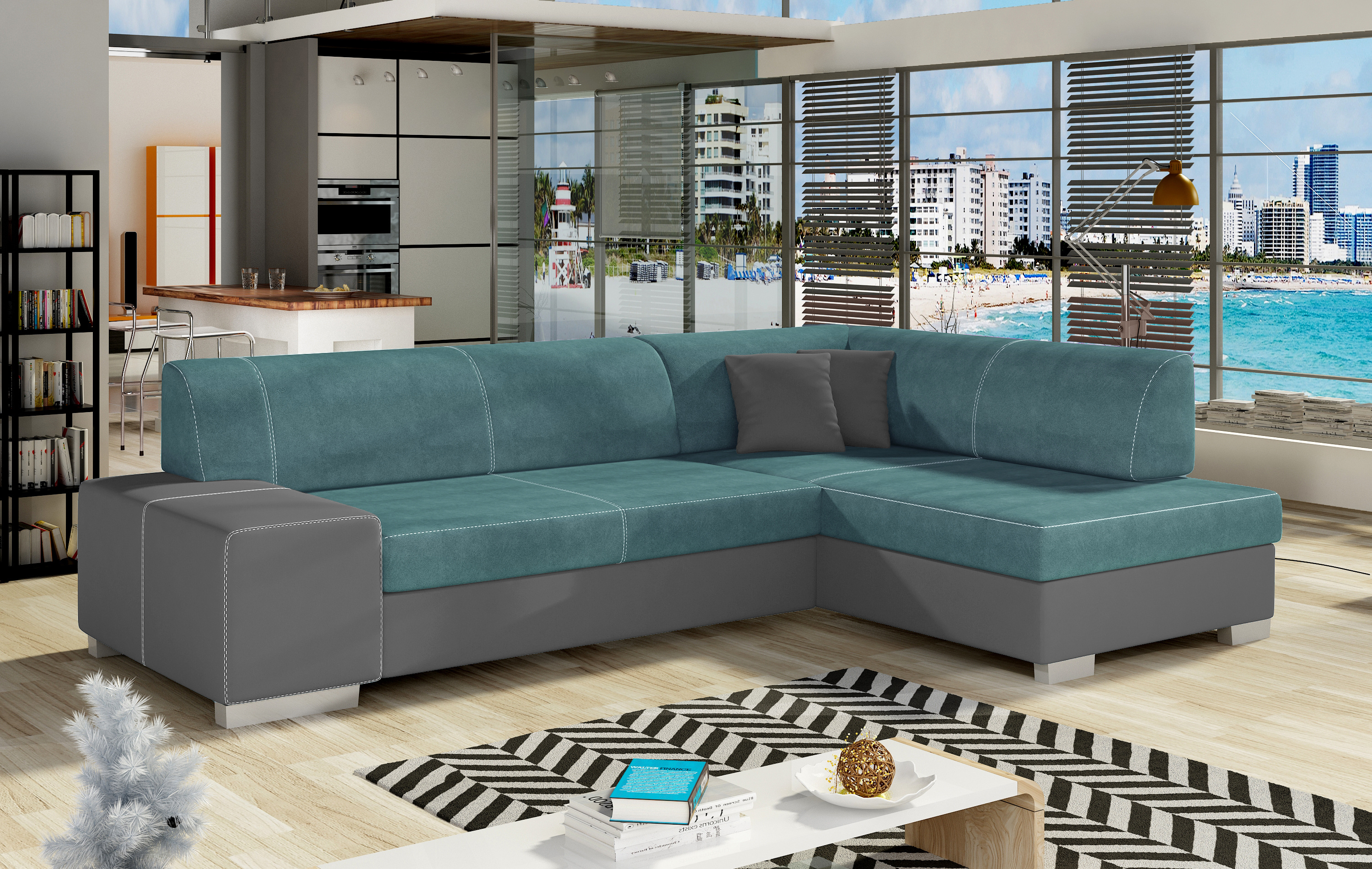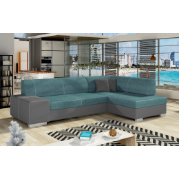 Sedací souprava Fabio v provedení Ontario 83 / eko kůže Soft 29 má rám z borovicového dřeva. Sedadlo je vyplněno vlnitou pružinou a vysoce kvalitní elastickou pěnou T30. Pomocí mechanismu DL vznikne spací plocha o rozměru 195x125 cm. Nožky jsou plastové stříbrné o výšce 8 cm. Disponuje úložným prostorem. Nosnost soupravy 315 kg. Provedení rohu pravé. Dekorační polštáře jsou součástí. Zboží je částečně smontováno.